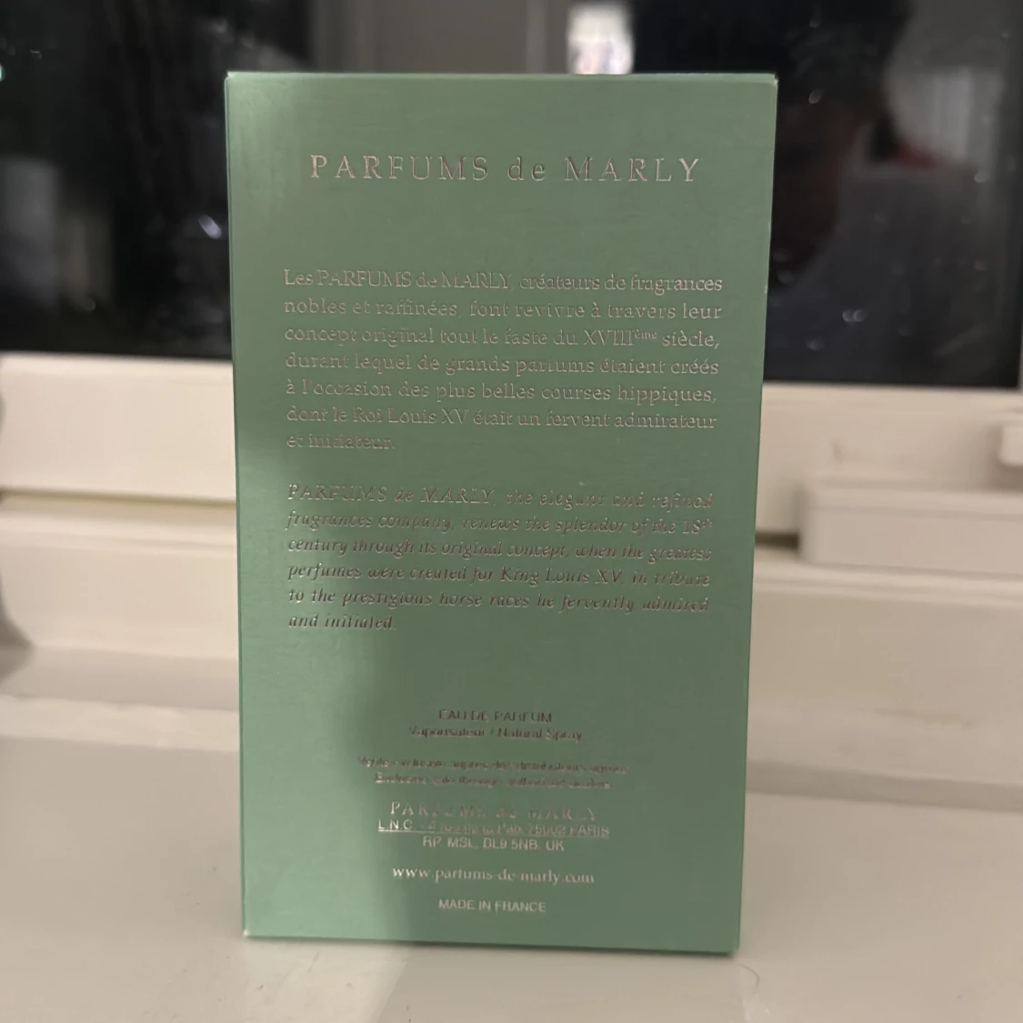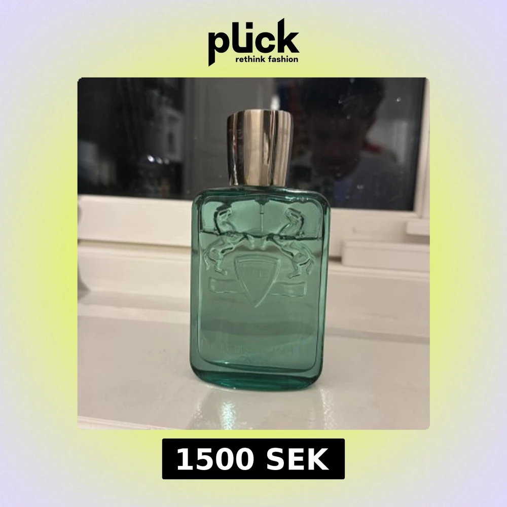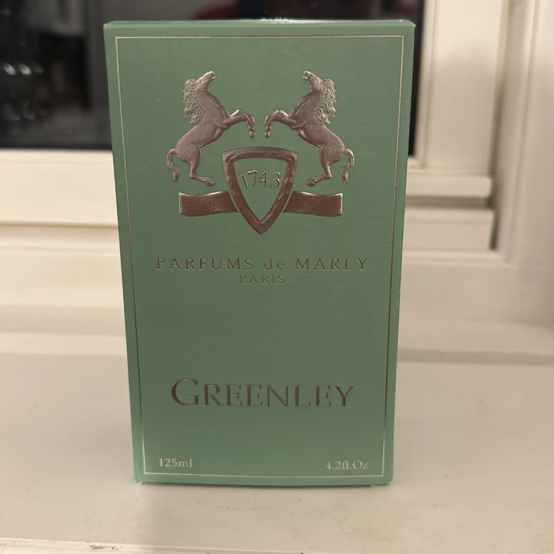 Greenley från Parfums de Marly, 125ml Eau de Parfum. Snygg flaska och box med unikt designad logga. Tillverkad i Frankrike. Perfekt för dig som vill sticka ut med en exklusiv doft. Det är ungefär 100ml kvar på den och den kommer med originella lådan för parfymen