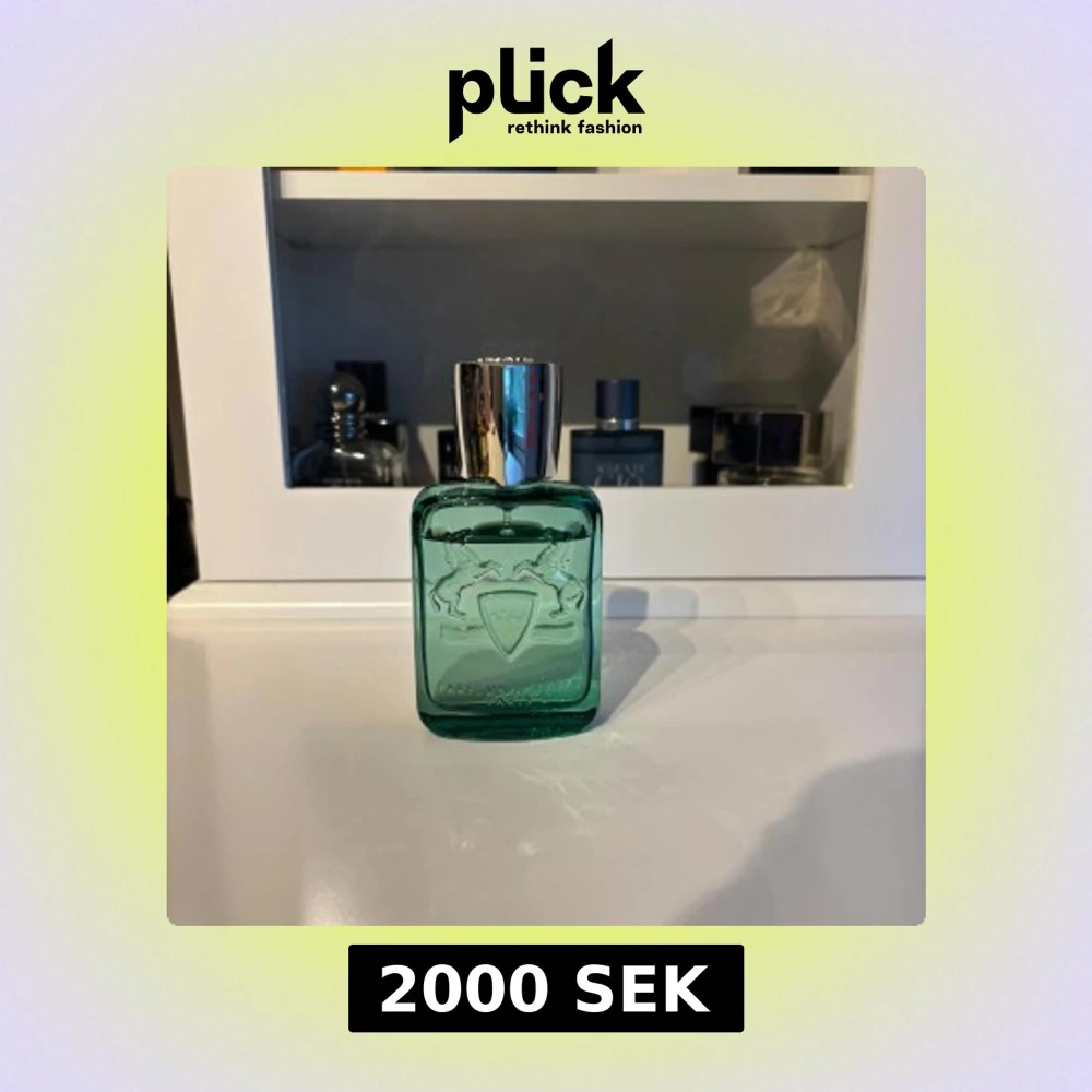 Greenley från Parfums de Marly är en lyxig herrparfym i en grön glasflaska med silverfärgad kork. Flaskan har två upphöjda hästar och märkets logotyp på framsidan. Doften är fräsch och modern, perfekt för dig som gillar exklusiva parfymer.