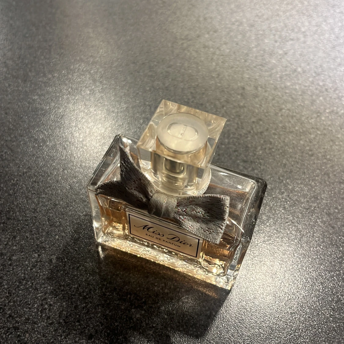 Miss Dior Eau de Parfum med elegant design och en söt rosett på flaskan. Fick i present av min kille i vintras men har tyvärr inte kommit till så mycket anvdäninh som den förtjänar. Jättefin god doft verkligen!!Volym som är kvar syns på bildern