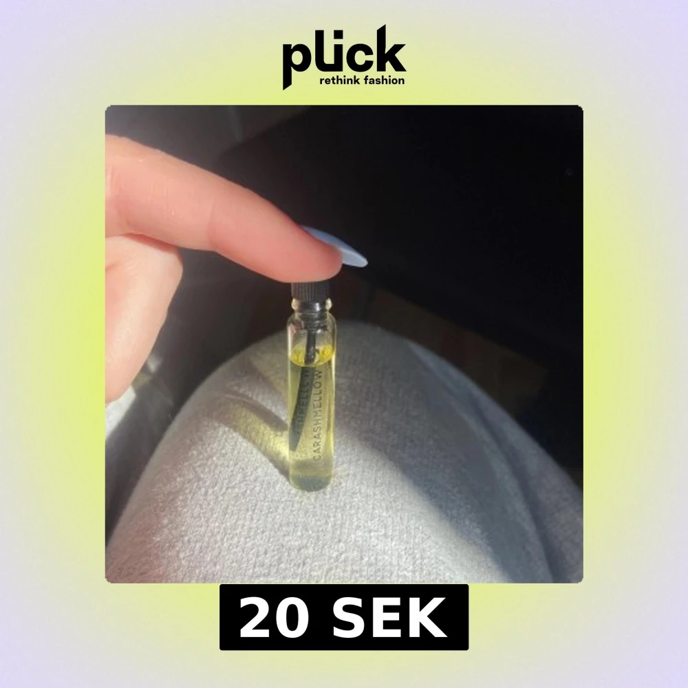 Litet parfymprov med doften Carashmallow Essence. Flaskan är genomskinlig med en svart skruvkork och innehåller en ljusgul vätska. Perfekt för att testa en ny doft eller ha med på resan. Säljer pågrund av att det inte var min doft
