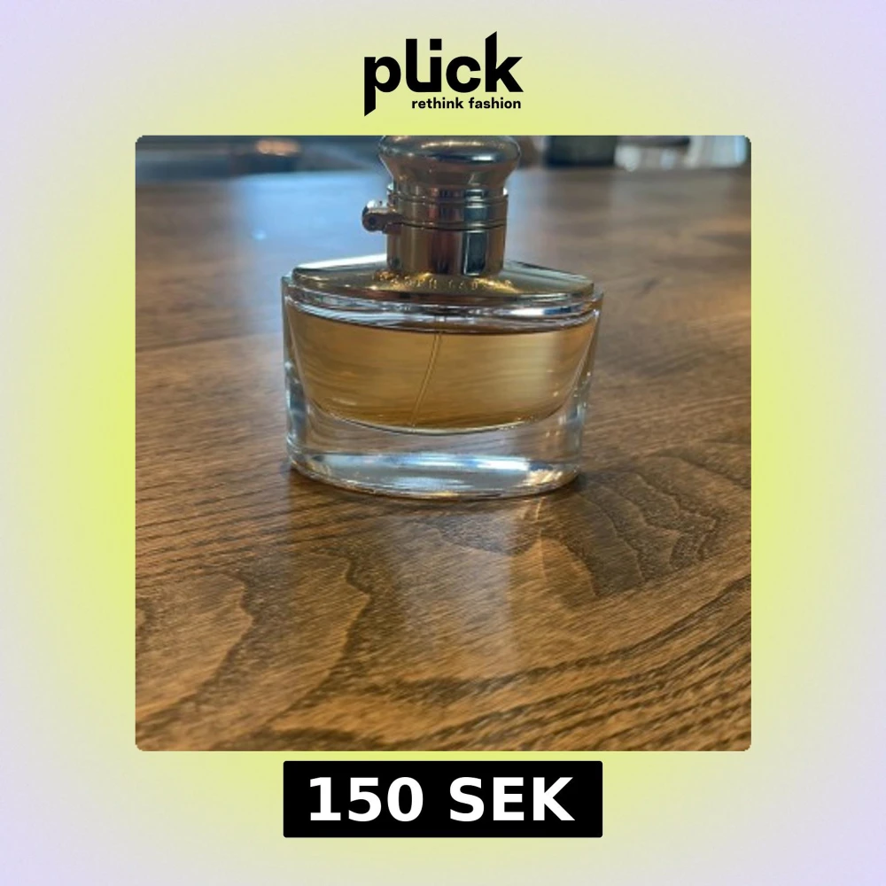 Elegant parfymflaska från Ralph Lauren med ett stilrent, ovalt glas och ett blankt silverfärgat lock. Flaskan har en gyllene vätska inuti och RL-loggan på locket. Perfekt för dig som gillar klassisk och lyxig design.