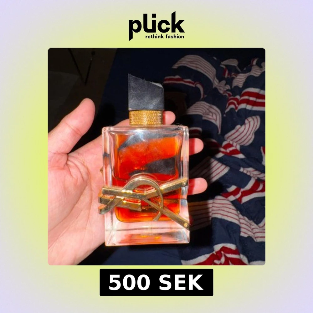 en elegant parfymflaska med en distinkt rektangulär form och en gyllene YSL-logotyp som pryder framsidan. parfymen är fylld med en djup bärnstensfärgad vätska, doft på parfymen är exotiskt vanilj. perfekt för den som söker en lyxig, stilren doftupplevelse & vibe! använt fåtal gånger, kan mötas upp annars står köparen för frakten🩷