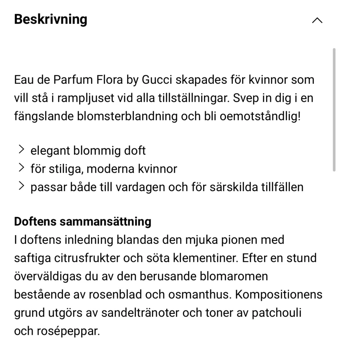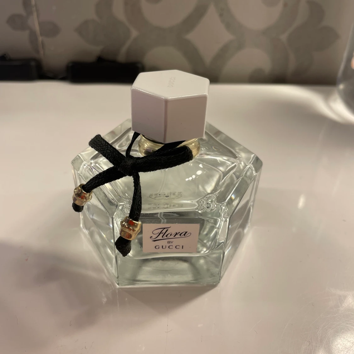 Flora by Gucci parfym. Väldigt lite använd. Från start 50ml, nu kanske 40-45ml. Luktar väldigt gott.