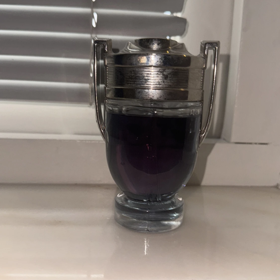 Parfym inspirerad av invictus luktar identiskt och håller fantastiskt bra. Säljer en unik parfym i en flaska formad som en trofé. Flaskan har en metallisk topp och handtag, med en mörkblå till lila vätska inuti. Perfekt för den som vill ha en iögonfallande design på sin parfymflaska. 100 ml från början nu cirka 95 ml kvar.