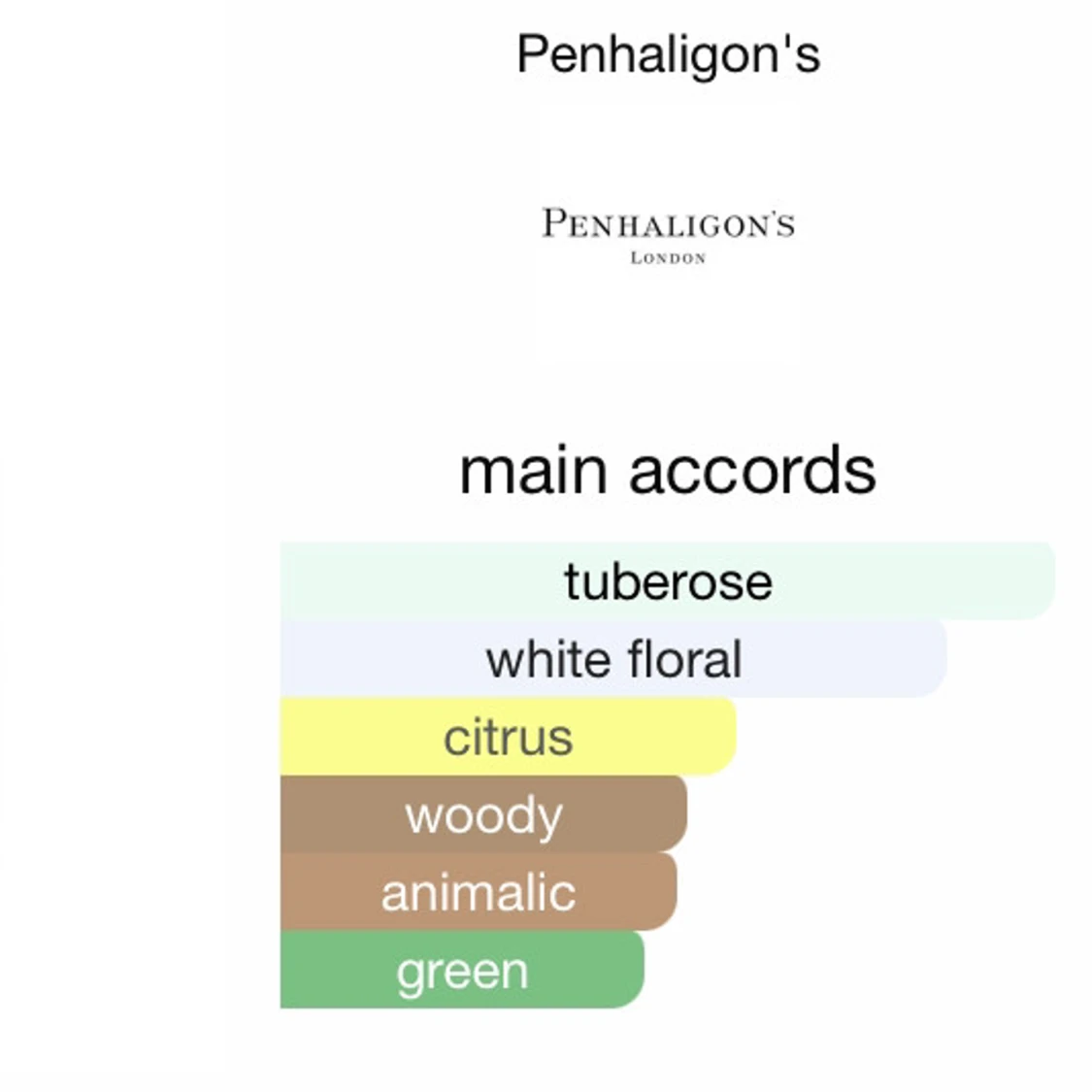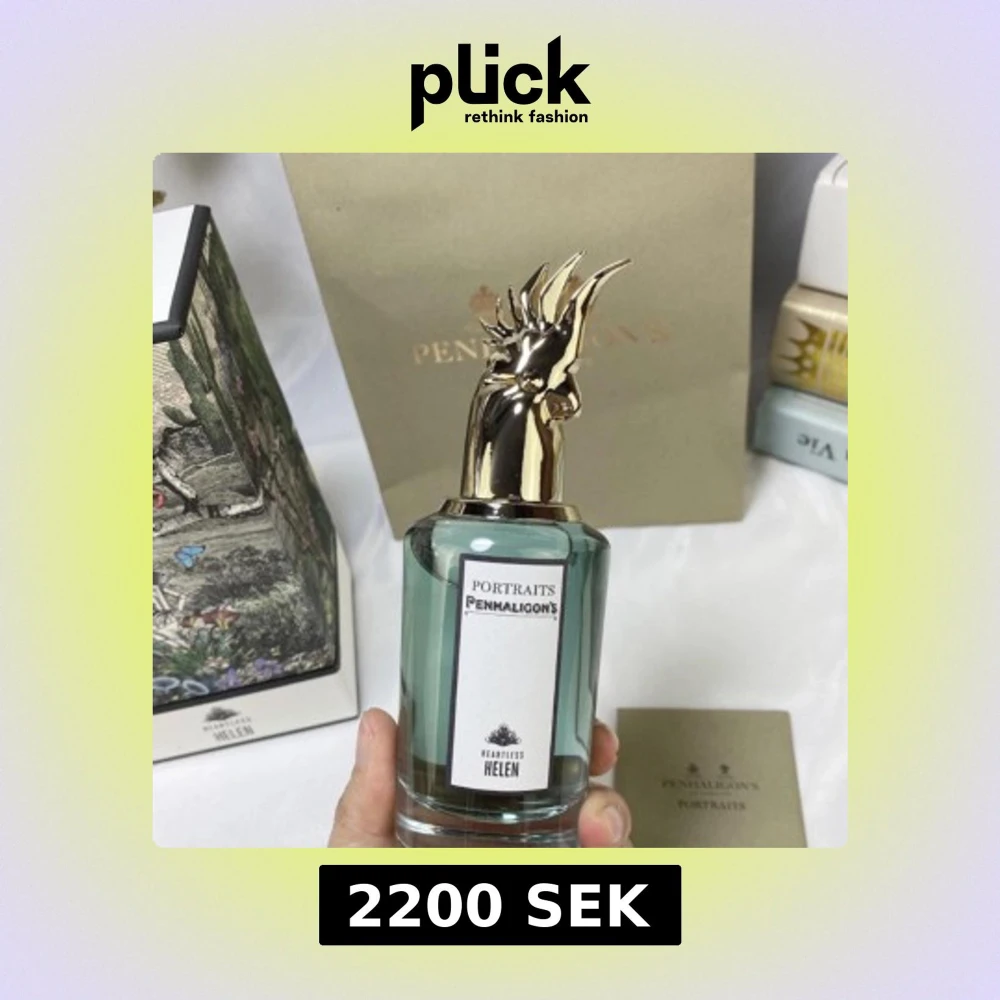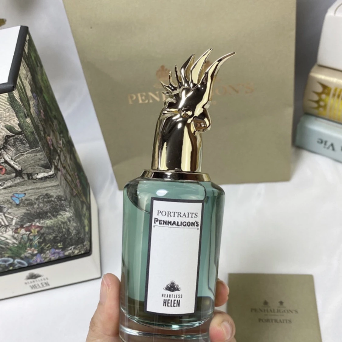 Upptäck den lyxiga doften Heartless Helen från Penhaligon's Portraits-serie. Flaskan har en unik design med ett gyllene djurhuvud som lock. Doften bjuder på en mix av tuberos, vit blomma, citrus, träiga och animaliska noter samt en grön underton. Perfekt för den som söker en elegant och djärv parfym.