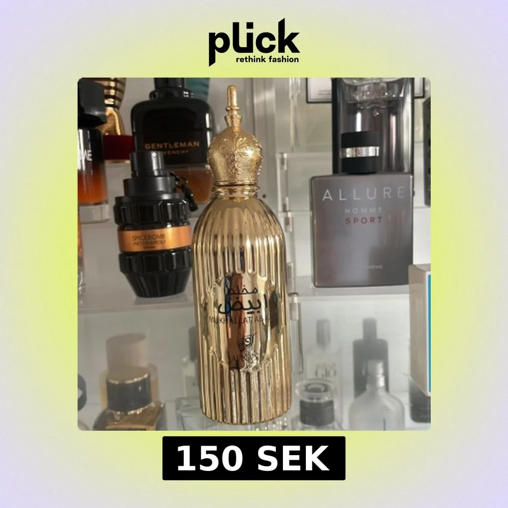 Elegant gyllene parfymflaska från afnan med en kapacitet på 100 ml. Flaskan har en lyxig design med en dekorativ topp och är tillverkad i Förenade Arabemiraten. Perfekt för den som söker en exklusiv doftupplevelse. Använt 10 sprays🤩🤩😀🤩