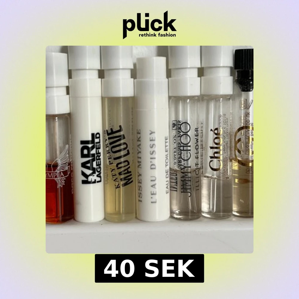 Säljer ett set med parfymprover från kända märken som Karl Lagerfeld, Katy Perry, Issey Miyake, Jimmy Choo och Chloé. Perfekt för dig som vill testa nya dofter.