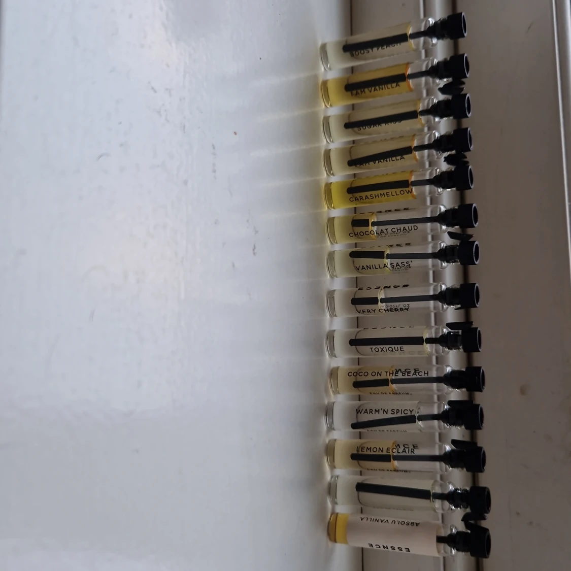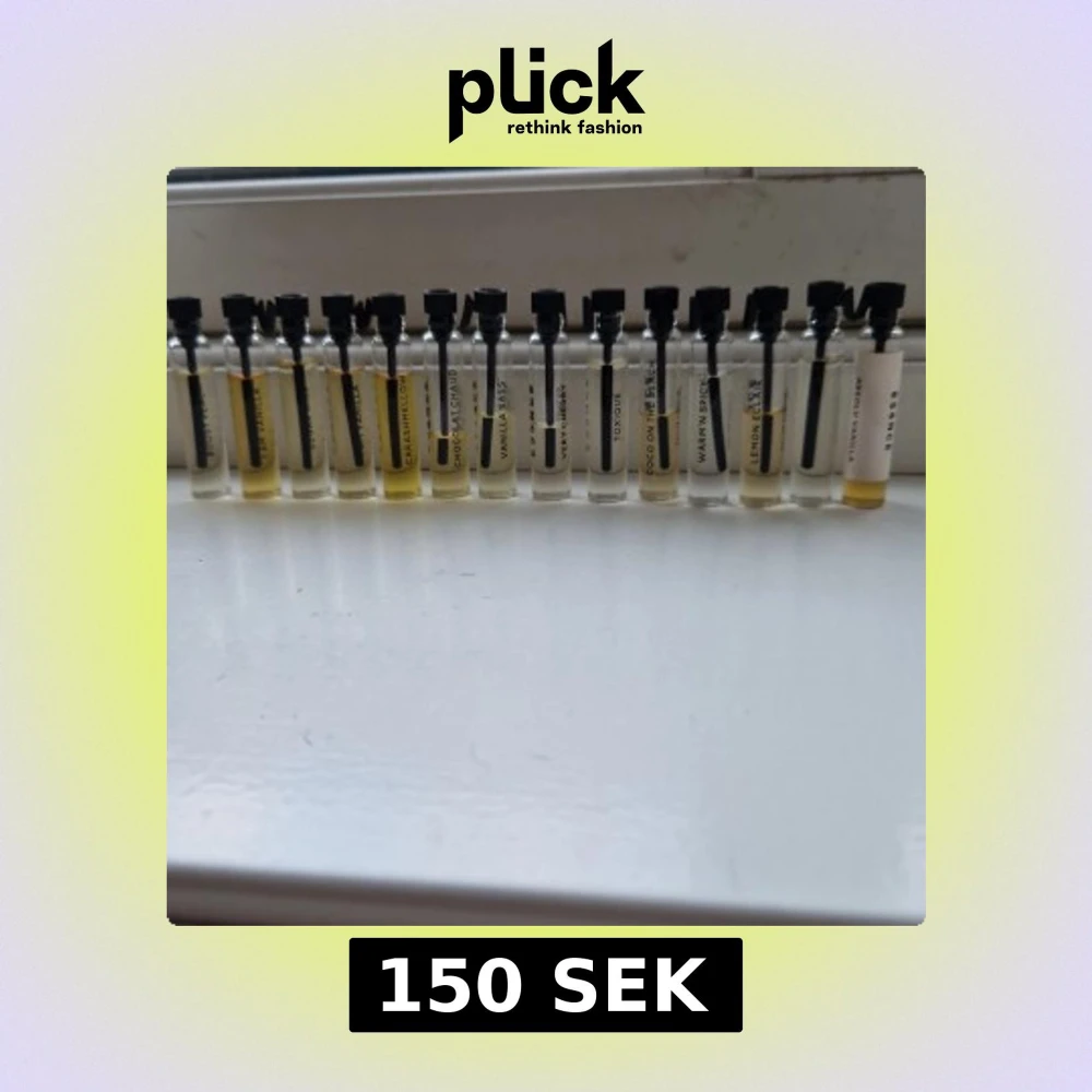Samling med 14 parfymprover 2 ml från Essnce. Vissa är mer använda än andra. Dofterna: Boosy peach, I am vanilla ( 2st ), Sugar Kiss, Carashmellow, Chocolat Chaud, Vanilla Sass, Very cherry, Toxique, Coco on the beach, Warm 'n Spicy, Lemon Eclair ( limited edition som inte säljs på deras hemsida längre ), Jardin de flora och Absolut Vanilla. Nypris 45 kronor styck
