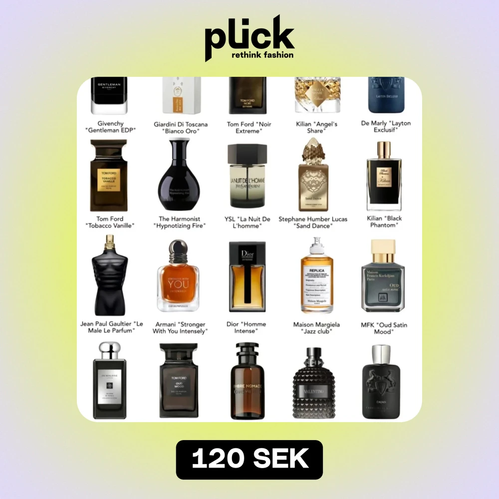 3x3 ml. Säljer ett gäng parfymprover från kända märken som Tom Ford, Dior och Versace. Perfekt för att testa nya dofter utan att köpa full flaska. Proverna kommer i små flaskor och är förpackade i snygga, holografiska påsar. Perfekt för parfymälskare som vill ha variation!. Kolla listan po bild 2 och välj dina 3 st favoriter.