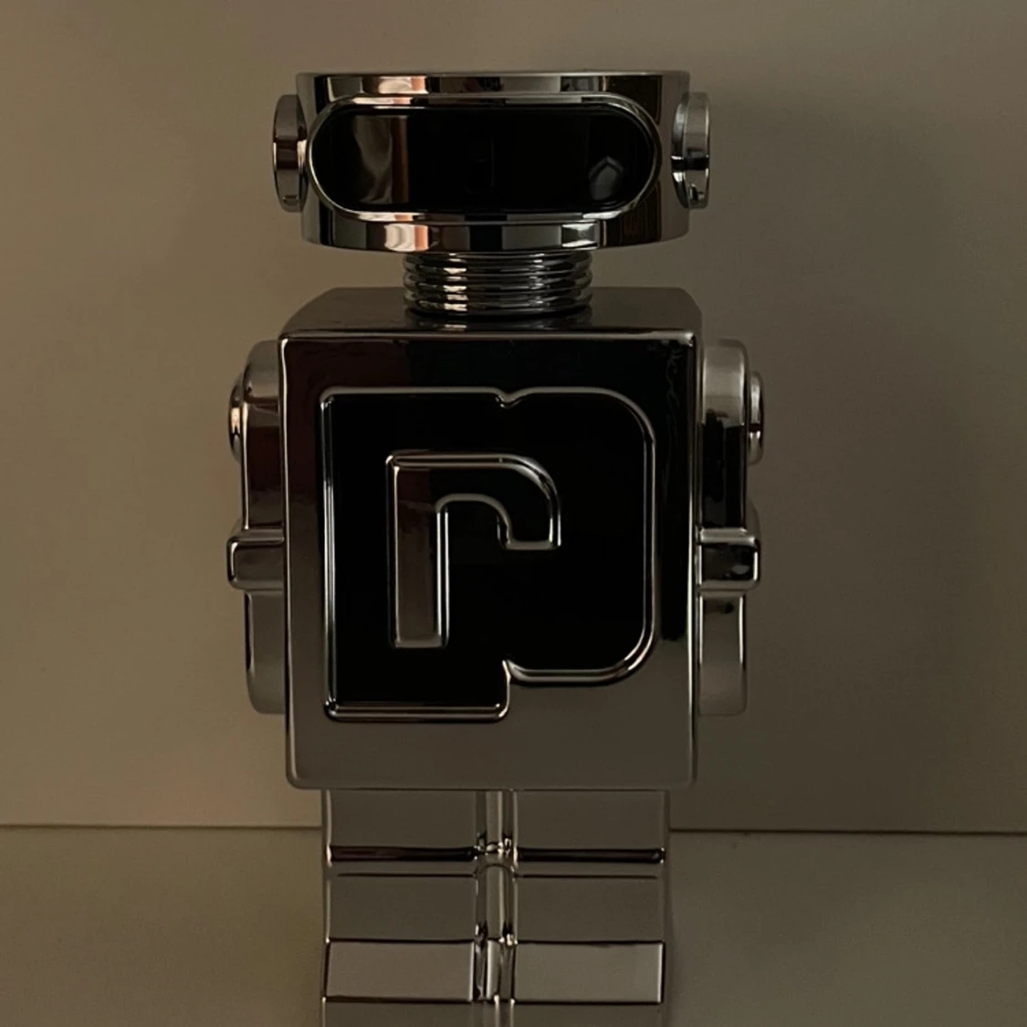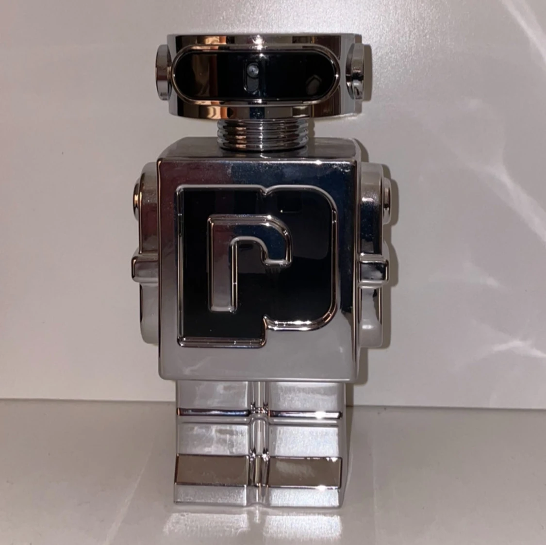 Säljer en futuristisk parfymflaska i form av en robot från Paco Rabanne. Perfekt för den som gillar unika och moderna designinslag i sin parfymsamling. Endast luktad på så finns omkring 97 ml.
