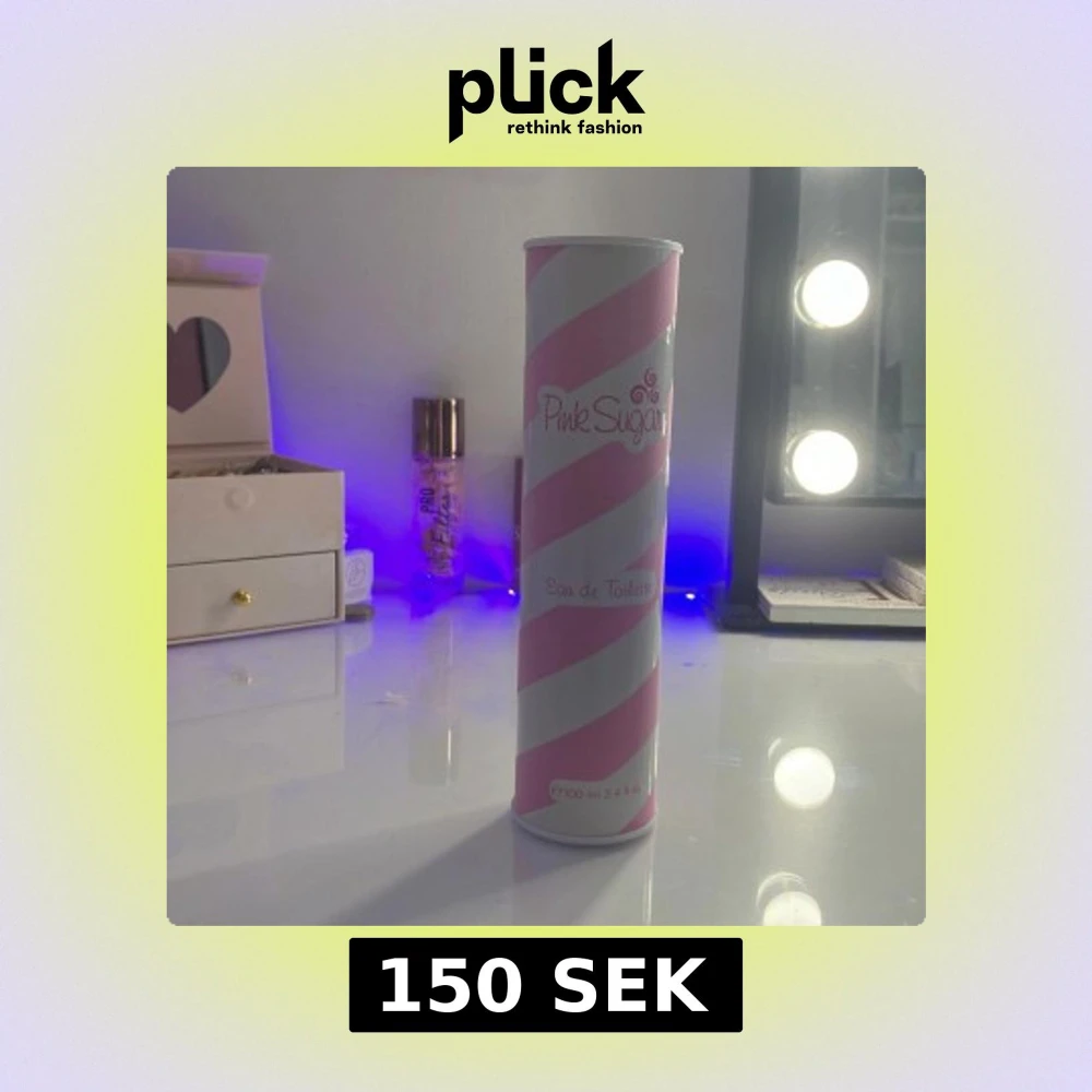 Säljer en söt och lekfull parfym från Pink Sugar, Eau de Toilette i 100 ml. Flaskan kommer i en cylinderformad förpackning med rosa och vita diagonala ränder, inspirerad av sockervadd. Tillverkad i Italien, perfekt för dig som gillar söta dofter. Den är väldigt söt och behövs inte många sprut av parfymen för att få en doft som håller hela Dan!💕💕
