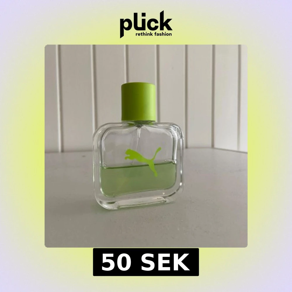 Fräsch parfym från Puma i en genomskinlig fyrkantig flaska med limegrön kork och logga. Parfymen har en ljusgrön nyans och modern design, perfekt för dig som gillar sportiga dofter.