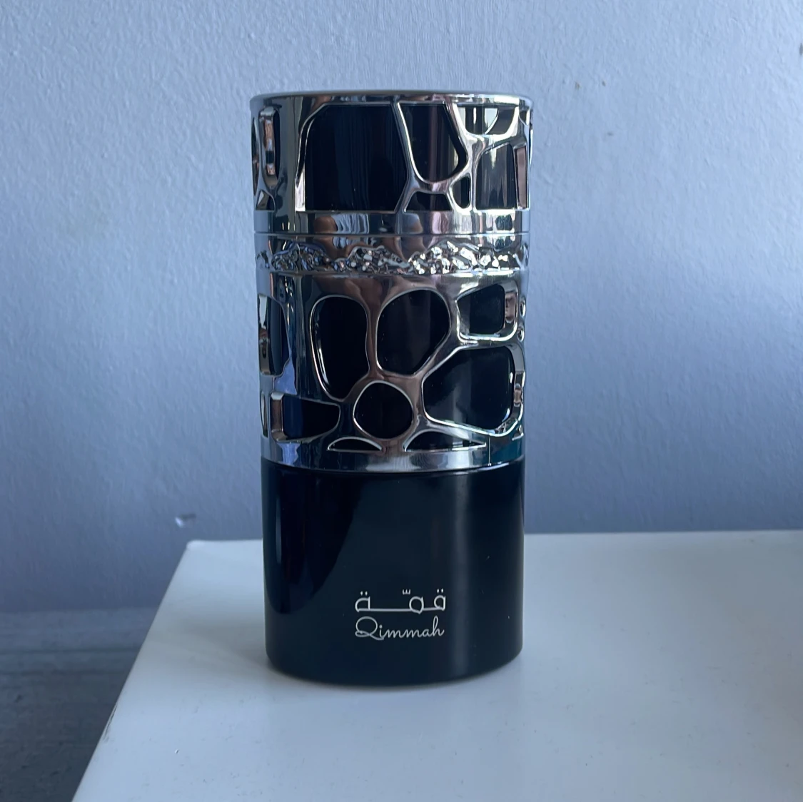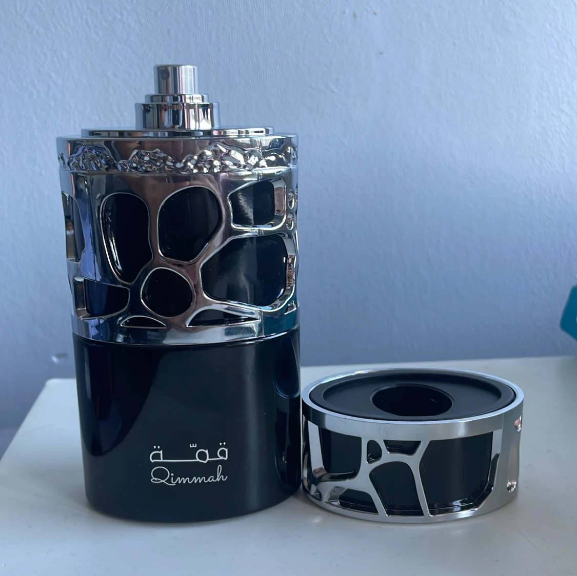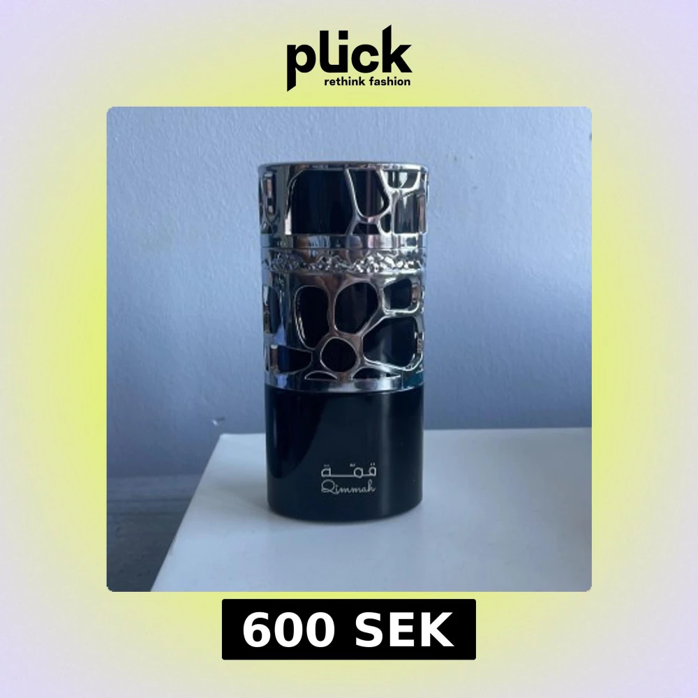 Snygg parfym från Qimmah med unik design och stilren look. Perfekt för dig som vill sticka ut och ha något annorlunda i din samling. Flaskan har coola detaljer i silver och svart. Volym och ingredienser framgår ej på bilderna.