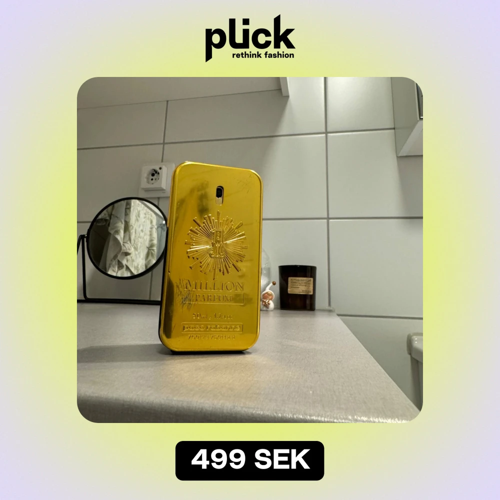 Säljer en lyxig parfymflaska i guld från Paco Rabanne. Flaskan har en elegant och modern design med en glansig yta och detaljer i relief. Perfekt för den som vill ha en doft med stil och attityd. Flaskan är i gott skick och redo att användas. Innehåller ca 48ml