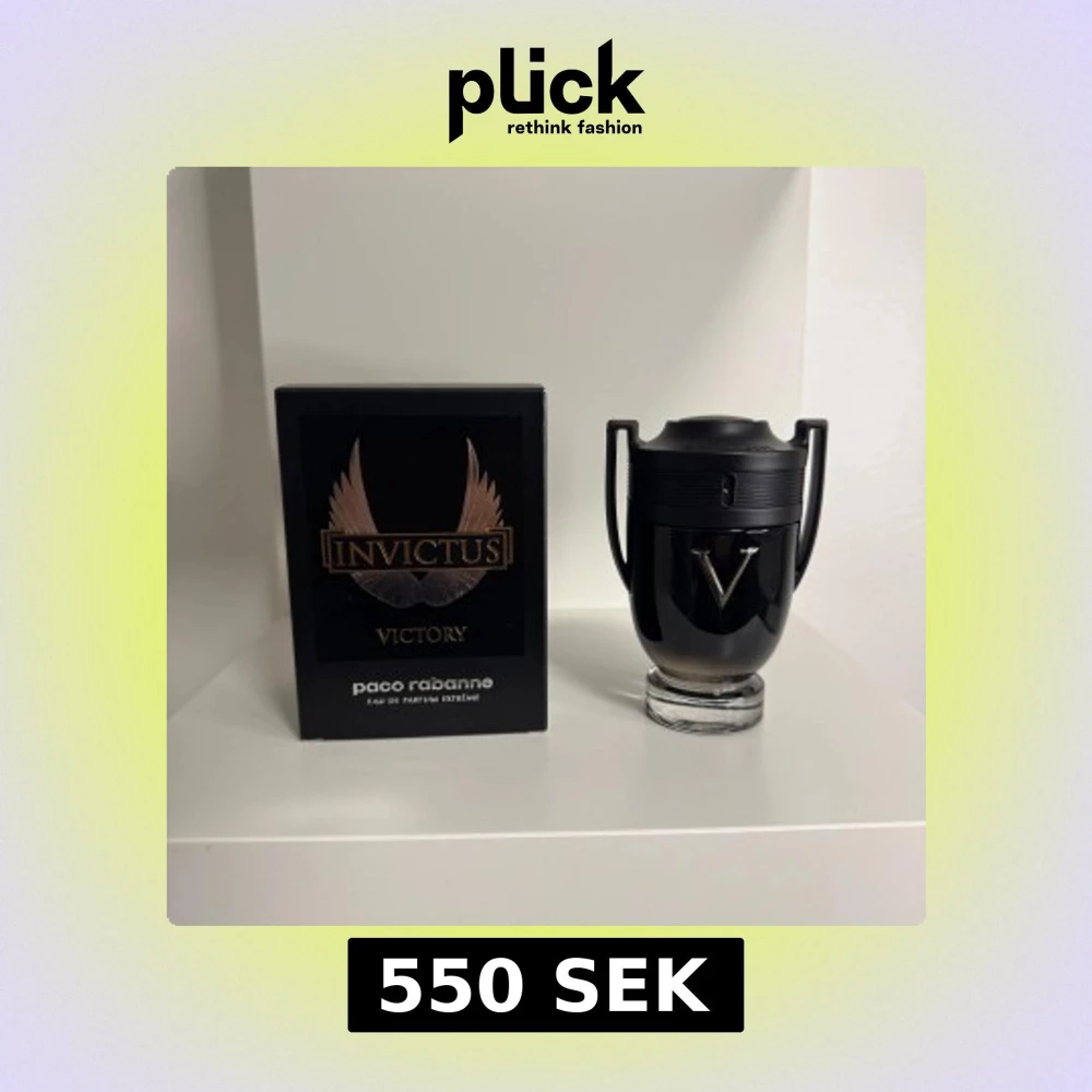 En lyxig parfym i svart troféformad flaska med silverdetaljer och ett stort V på framsidan. Kommer i en elegant svart kartong med guldiga vingar och text. Doften är intensiv och maskulin, perfekt för dig som vill sticka ut.