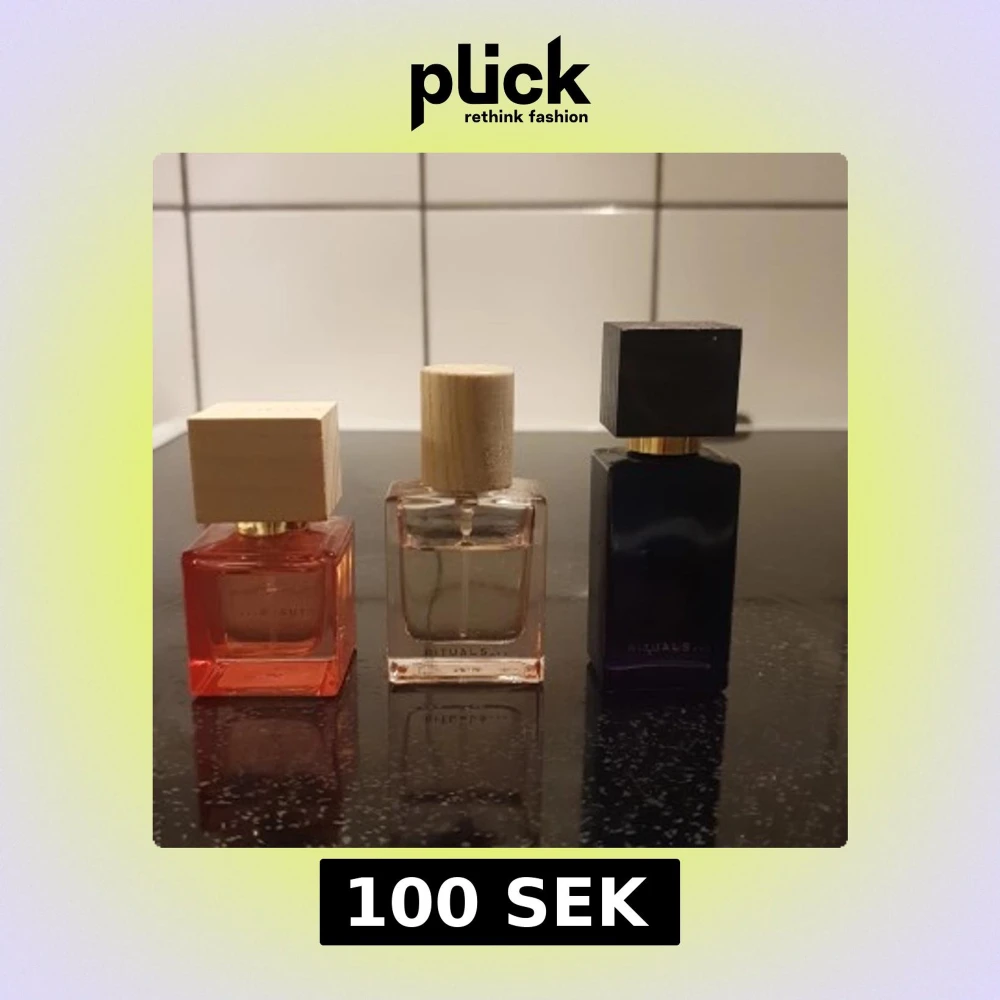 Rituals parfym: Hanami 15 ml nästan orörd, Serendipity 15 ml(halva flaskan kvar) och Himalaya 10 ml (80%kvar i flaskan. Tyvärr inga kartonger kvar.