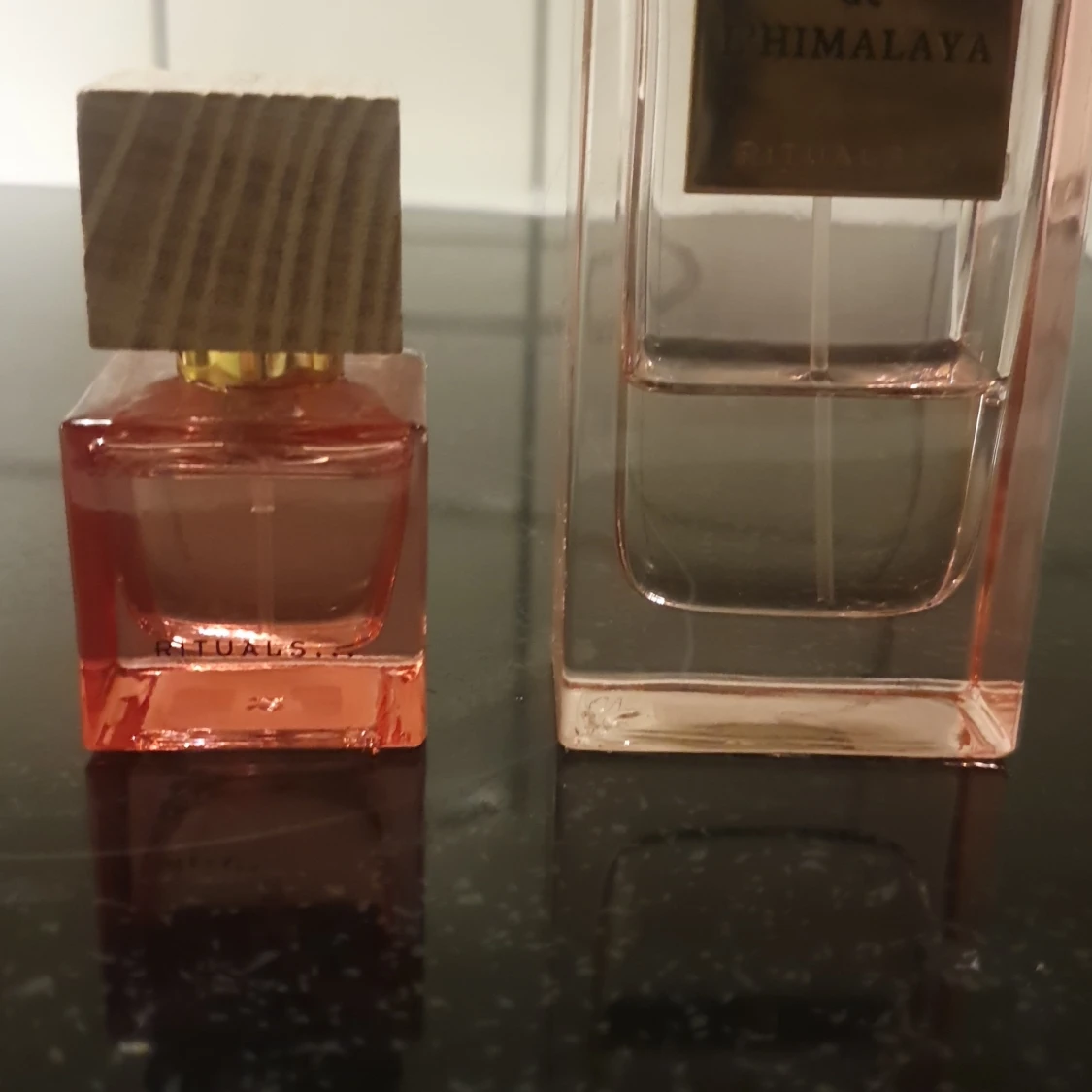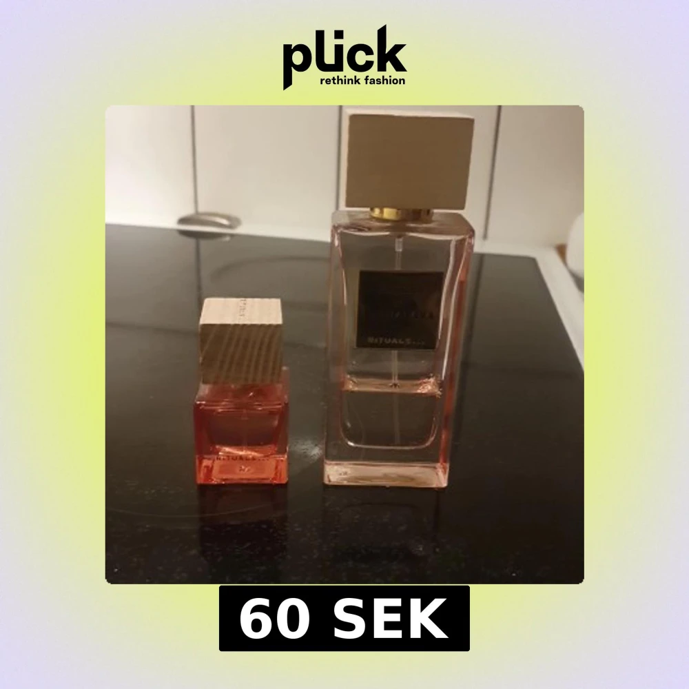 Snyggt parfymset från Rituals med två flaskor i olika storlekar. Perfekt att ha en hemma och en i väskan. Modern design med trälock och stilren look. Rituals Hammam (den lilla 15 ml) är full, och Rituals L'Himalaya (den stora 60 ml) är det 1/3 del kvar. Säljer då jag hittat en ny favorit.