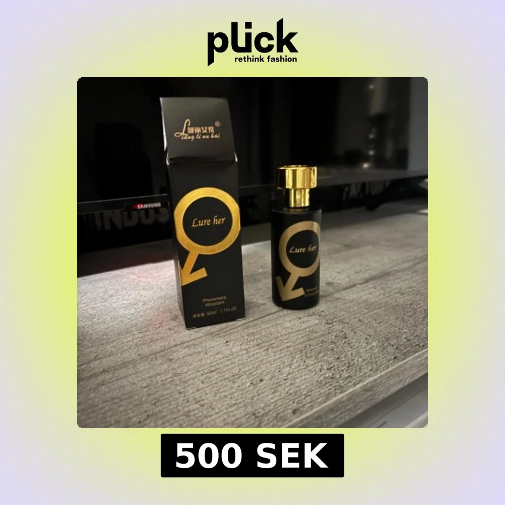 (Helt ny oanvänt) Elegant parfymflaska i svart med gyllene detaljer och text. Innehåller 50 ml av en förförisk doft med feromoner, designad för att attrahera. Flaskan har en lyxig gyllene kork och kommer i en matchande svart och guld kartong, produkten är beställd och om det verka få ditt intresse skriv gärna.