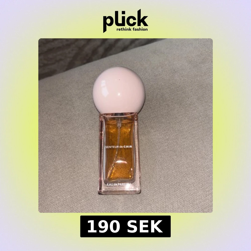 Parfymflaska från Caia med namnet Senteur de Caia. Flaskan är rektangulär i genomskinligt glas med en ljusrosa, rund kork. Innehållet är bärnstensfärgat och ger en lyxig känsla. Perfekt för dig som gillar snygg design och vill ha en trendig parfym på hyllan. Den är använd som ni ser, därav bra pris!💗