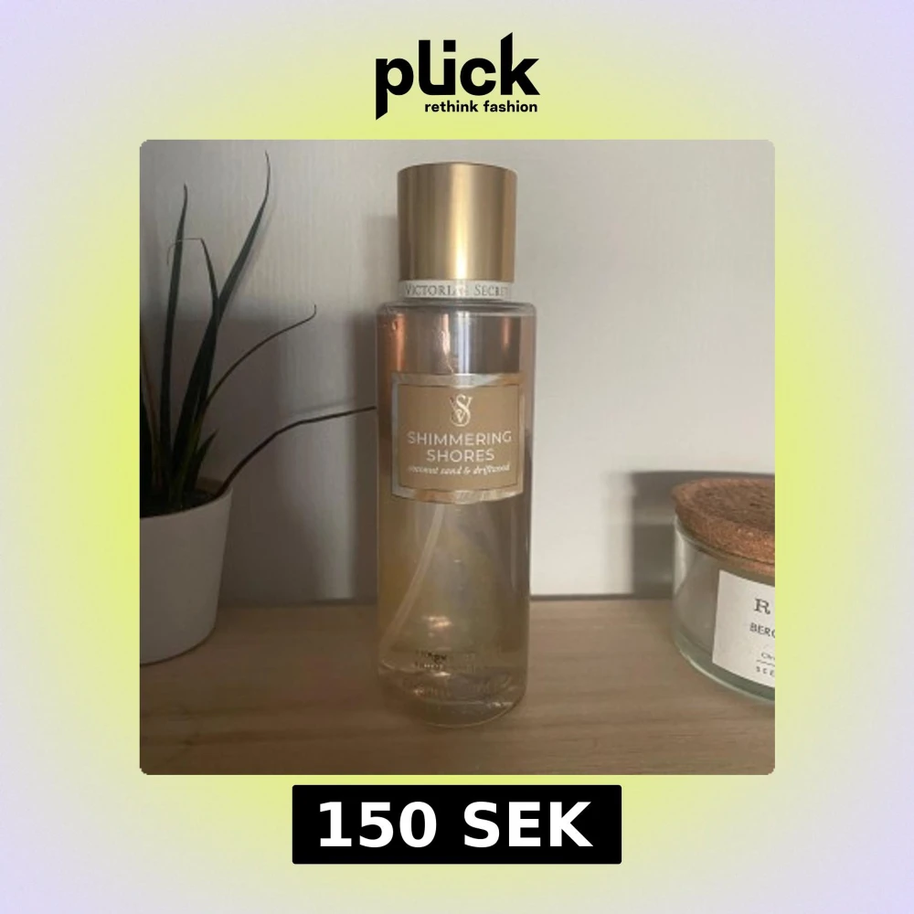 Mist från Victoria's Secret i doften ”Shimmering Shores”. Sååå god somrig kokosnöt med lite vanilj doft, men använder inte längre. Använd, men mycket kvar (ca 3/4 eller 2/3 kvar)