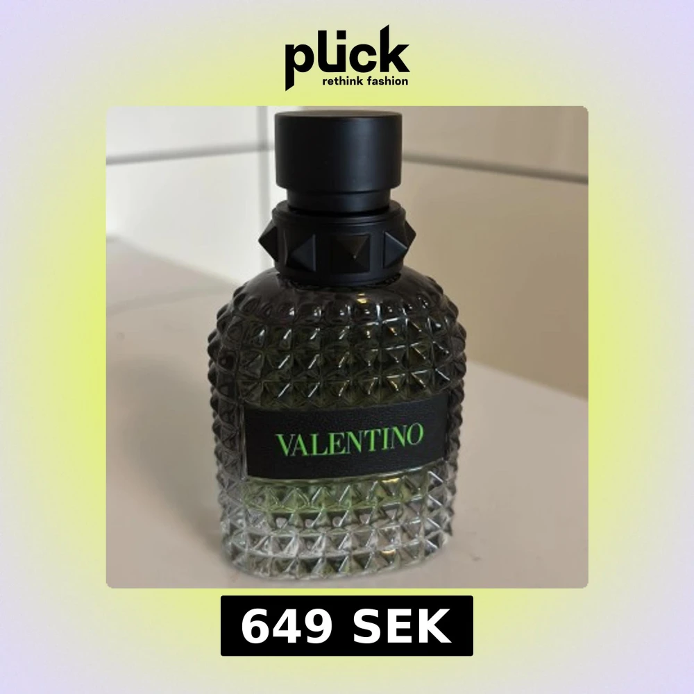 Upptäck Valentino Uomo Born in Roma Green Stravaganza, en herrparfym med en unik flaska i svart och grönt med ett mönster av nitar. Doften har fräscha citrusnoter kombinerat med kaffe, aromatiska och kryddiga inslag, samt en varm och jordig bas. Perfekt för den som vill sticka