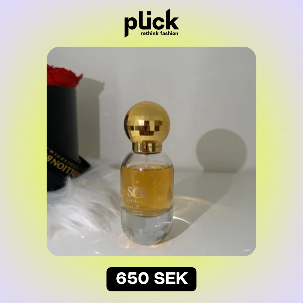 Säljer en lyxig och elegant parfym från Sol de Janeiro, Cheirosa '62. Flaskan har en rund, gyllene kork och en genomskinlig glasflaska som visar den gyllene vätskan inuti. Perfekt för dig som älskar varma och exotiska dofter. Passar både till vardags