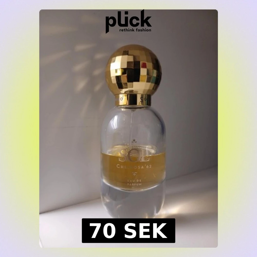 Sol de Janeiro Cheirosa '62 Eau de Parfum med en unik rund flaska och en glansig, guldmönstrad kork. Flaskan är genomskinlig med guldfärgad etikett och parfymen har en varm, gyllene ton. Perfekt för dig som gillar lyxig och iögonfallande design.