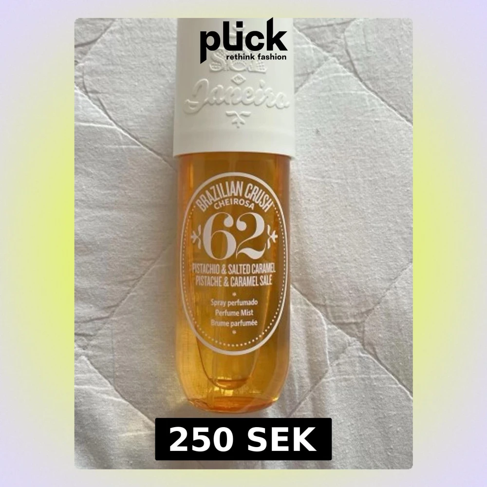 En parfymmist från Sol de Janeiro med doft av pistage och salt karamell. Flaskan är genomskinlig med gul ton och har ett vitt lock med präglad logga. Perfekt för dig som gillar söta och krämiga dofter.