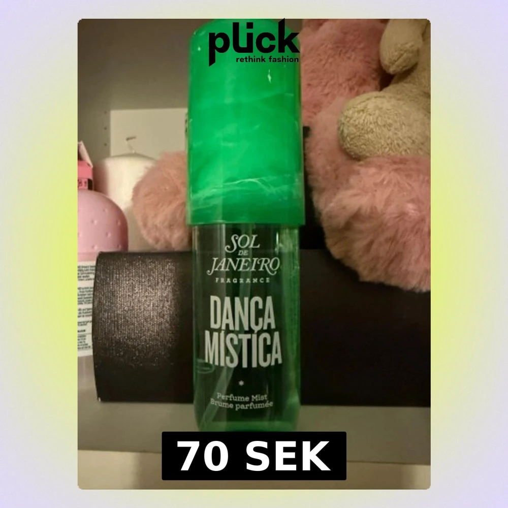 Fräsch parfym mist från Sol de Janeiro i modellen Dança Mística. Flaskan är grön och genomskinlig med ett stort grönt lock. Perfekt för dig som gillar tropiska och unika dofter. ”Sprutar” högst 3 sprut