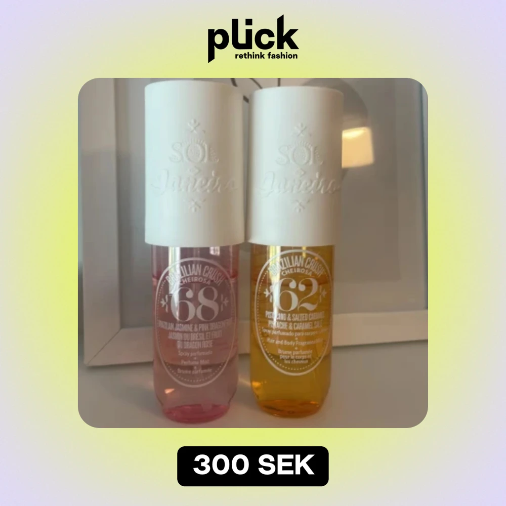 Två st öppnade och använda Sol de Janeiro parfymer i doft 62 och 68. 90 ml. Ni ser på bild 2 hur mycket jag använt. Orginalpris 269kr/st, jag säljer båda för 250 eller en för 150.