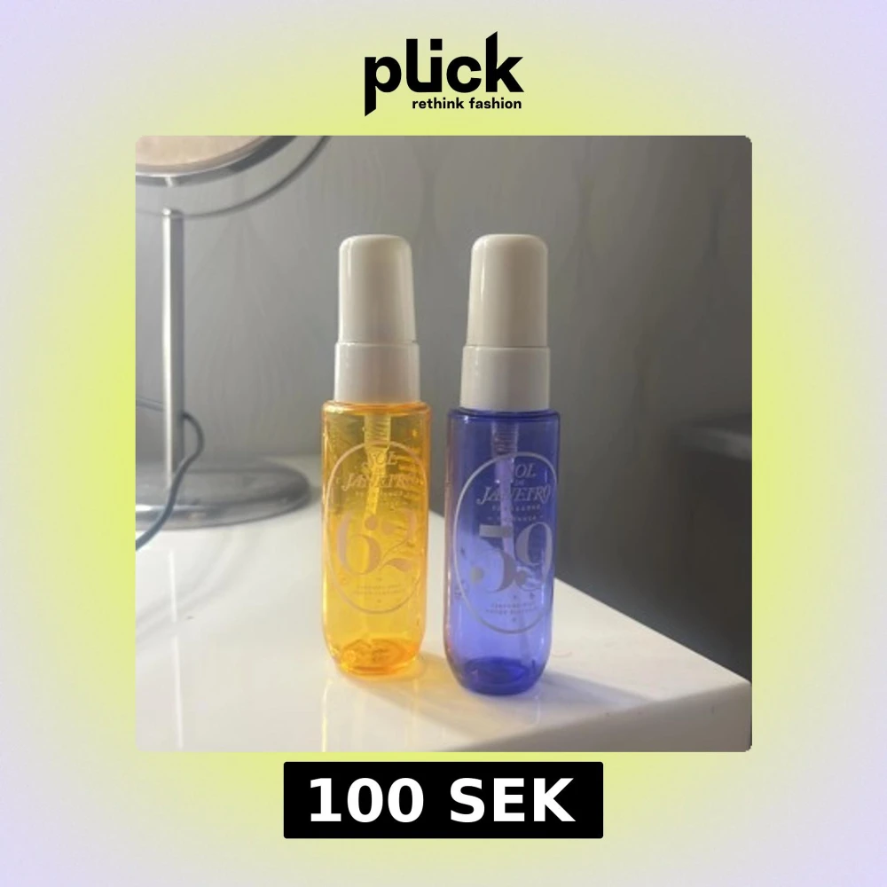 Två smidiga miniflaskor från Sol de Janeiro, perfekt att ta med i väskan båda är tomma flaskor och man kan lägga i en annan parfym inne o ha som en travel size. En för 50 kr och båda två för 100 kr