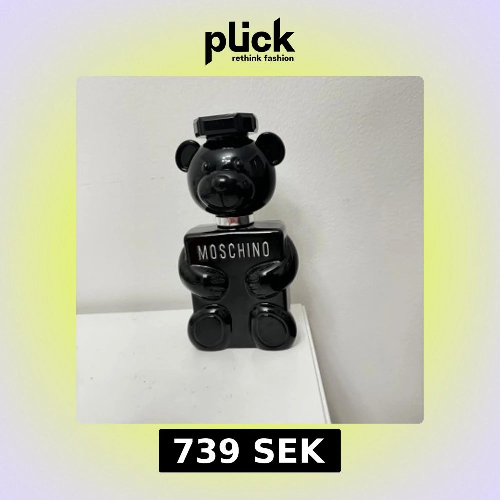 Unik parfymflaska i form av en svart björn från Moschino. Flaskan har en glänsande finish och är både lekfull och stilren. Perfekt för den som vill ha en iögonfallande detalj på sminkbordet. Använd några gånger men var inte min smak. Ca 90 % av parfymen kvar
