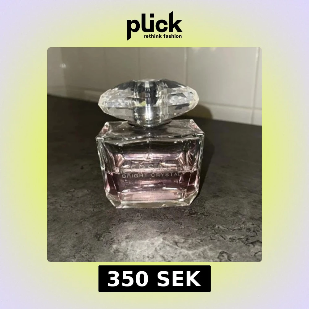 Versace Bright Crystal är en lyxig parfym i en elegant, fyrkantig glasflaska med ljusrosa doftvätska. Flaskan har en stor, kristalliknande transparent kork som ger exklusiv känsla. Perfekt för dig som gillar fräscha och blommiga dofter. 200 ml men halva kvar, så ca 100 ml. Är inte tung utan väldigt fräsch och ungdomlig! Pris kan diskuteras men tänk på att detta är 100ml Versace!