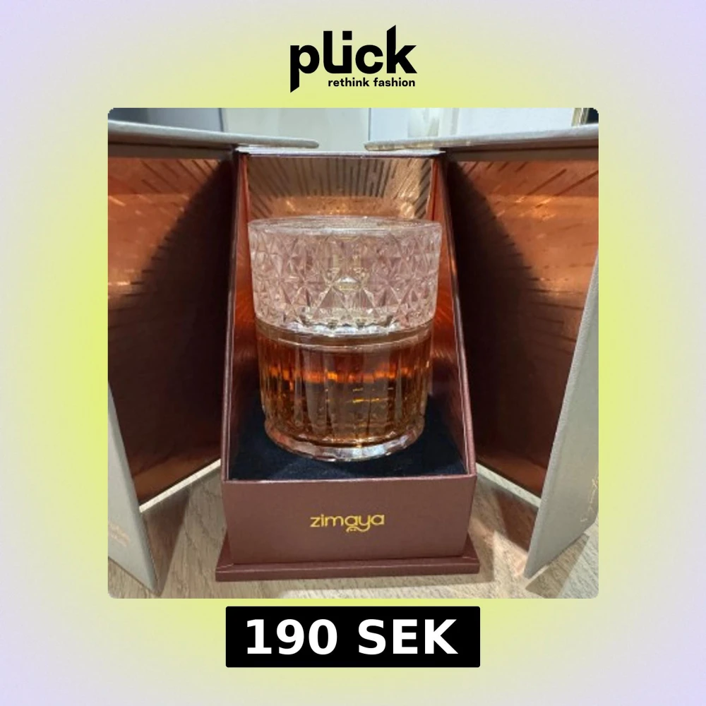 Lyxig parfym från Zimaya i en tung, kristalliknande glasflaska med guldlock. Doften heter Sharaf Blend och flaskan har ett elegant mönster och bärnstensfärgad vätska. Kommer i en exklusiv presentask med kopparfärgade detaljer.