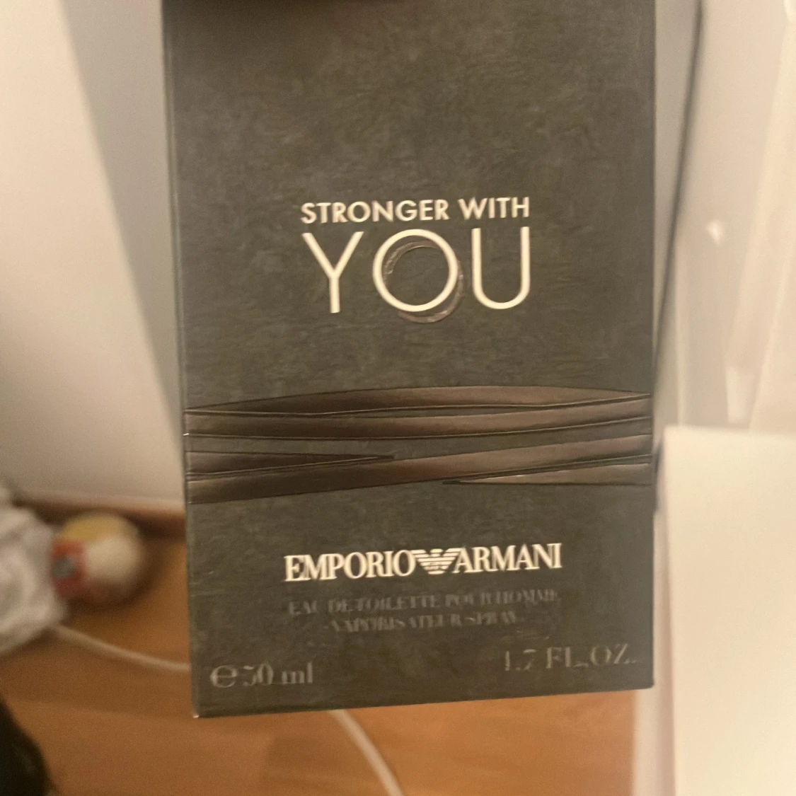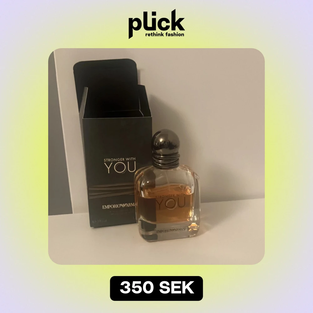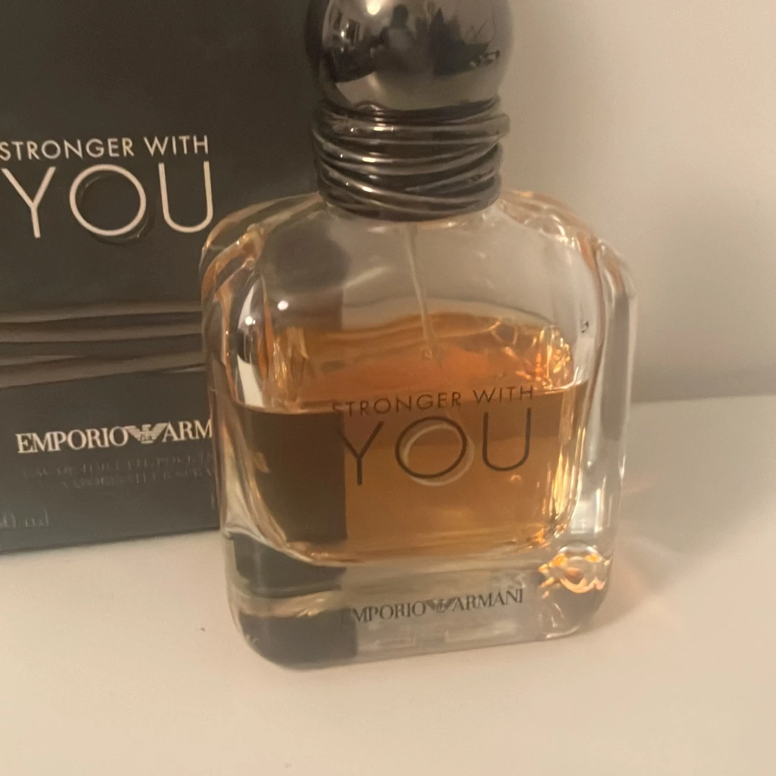 Säljer en flaska Stronger With You Eau de Toilette från Emporio Armani. Flaskan är elegant med en rundad silverfärgad kork och innehåller en varm, kryddig doft. Perfekt för hösten/vintern eller speciella tillfällen. Flaskan är på 50 ml men använd liten så ca 40 ml kvar och kommer i originalförpackning.