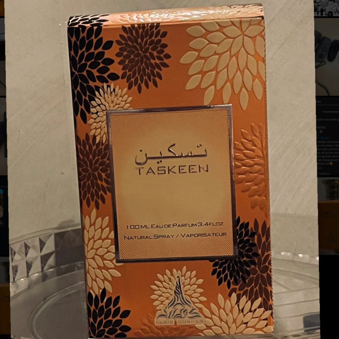 Taskeen från Paris Corner är en Eau de Parfum med 100 ml volym. Helt ny med kartong! Har sprayat några gånger. Doftar mycket som is te. Tyvärr är den inte för mig därför säljer jag den 🙏✨. Har sprejat flaskan typ 5 gånger bara. Kan posta eller mötas i vissa delar av Skåne. Eller Gbg i vissa perioder! ⭐️❤️