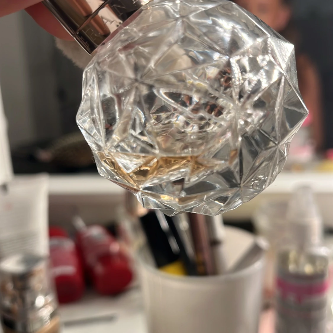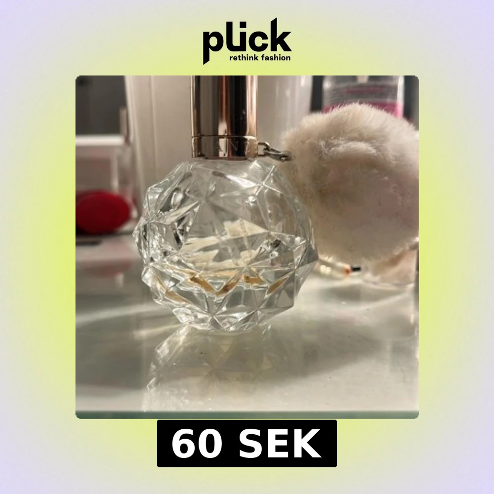 Superfin parfym från Ariana Grande i en kristallformad, transparent glasflaska med silvrigt lock och en stor vit fluffig boll som detalj. Flaskan har en lyxig diamantlook och är perfekt att ha framme på sminkbordet. Lite kvar men en perfekt mängd för en tester 💕