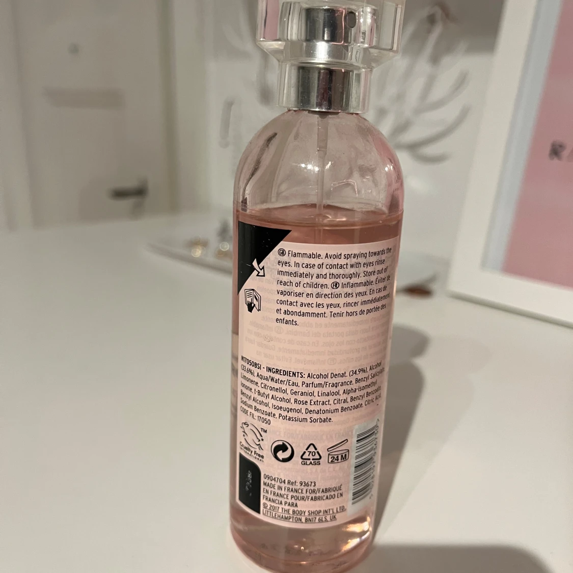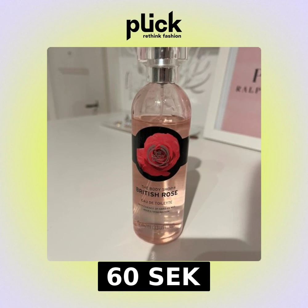 Fräsch eau de toilette med handplockade rosor från Storbritannien. Innehåller bl.a. alkohol, vatten, parfym, ros-extrakt och flera naturliga doftämnen. Volym: 100 ml. Tillverkad i Frankrike. Inte mycket använd. köpt för några år sedan.