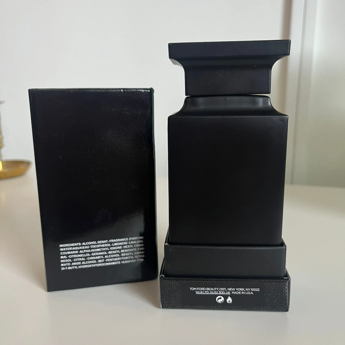 Exklusiv parfym från Tom Ford, Fucking Fabulous Eau de Parfum i 100 ml flaska. Flaskan är matt svart med stilren, fyrkantig design och tydlig vit etikett. Kommer med originalkartong i matchande svart. En lyxig och ikonisk doft för dig som vill sticka ut. priset ej hugget i sten vid snabbaffär