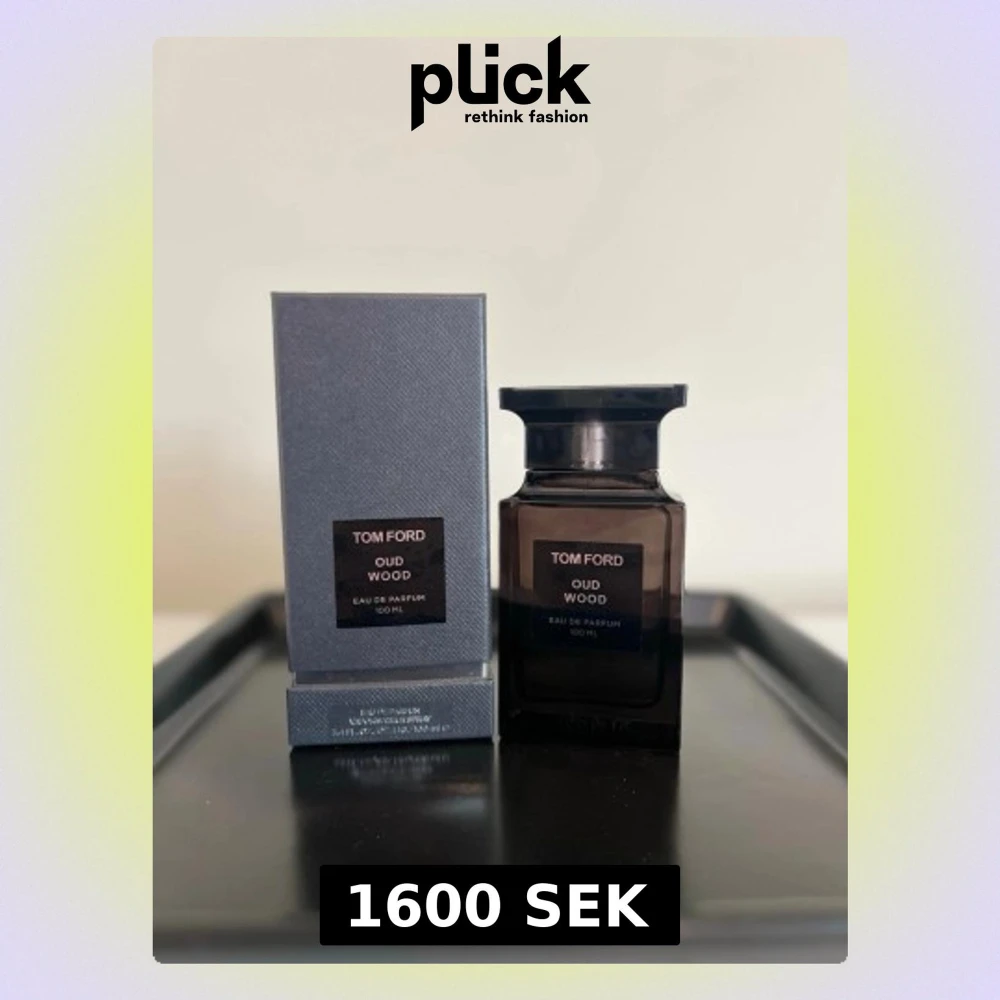 Tom Ford Oud Wood Eau de Parfum i en elegant mörkbrun glasflaska med svart etikett och matchande kartong. Flaskan rymmer 100 ml och har en lyxig, stilren design som passar perfekt på parfymhyllan. En exklusiv doft med träiga och orientaliska toner.