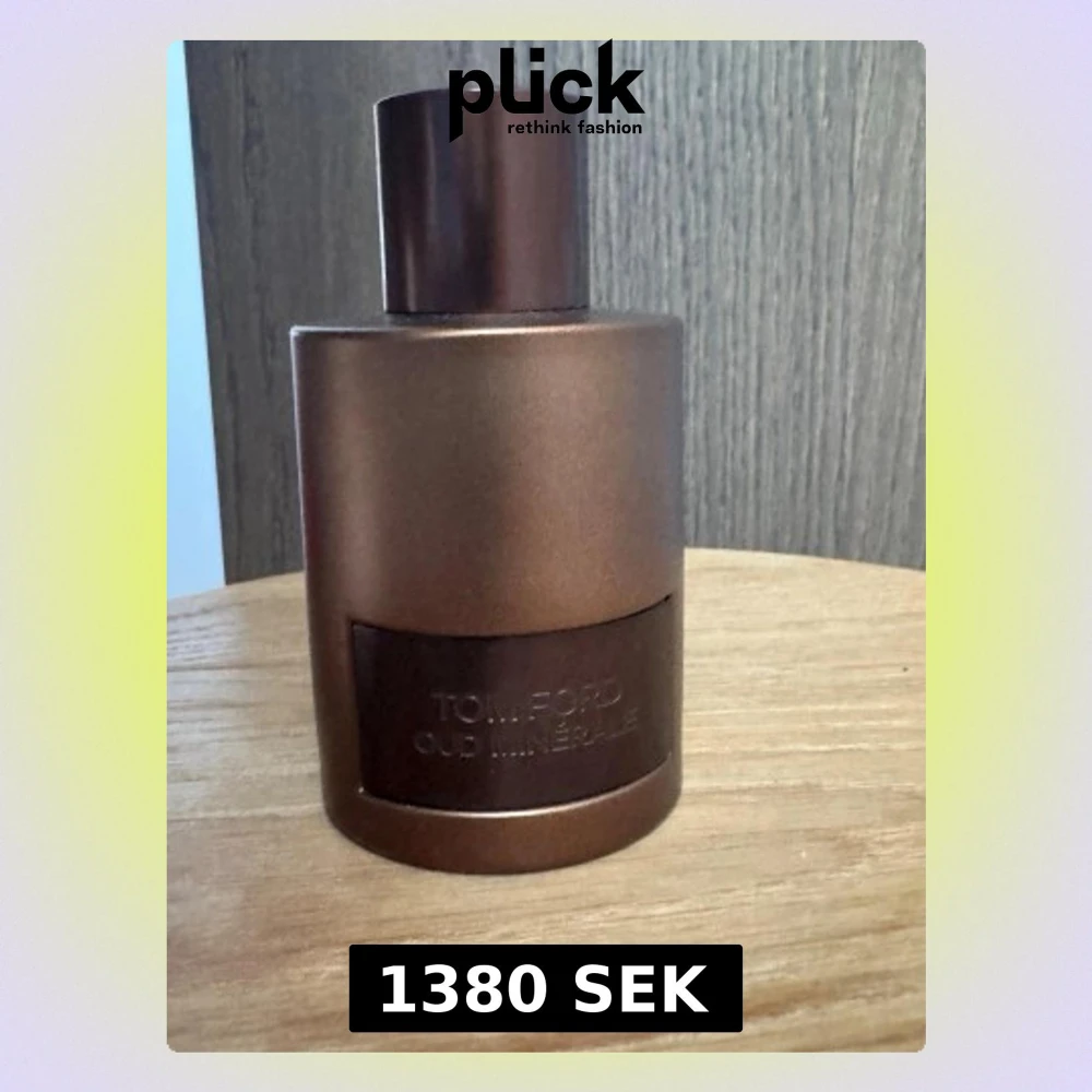 Tom Ford Oud Minérale parfym i en elegant, mörkbrun metallisk flaska med rund form och matchande lock. Flaskan har en stilren design med en präglad etikett framtill. Perfekt för dig som gillar exklusiva dofter och snygg förpackning.