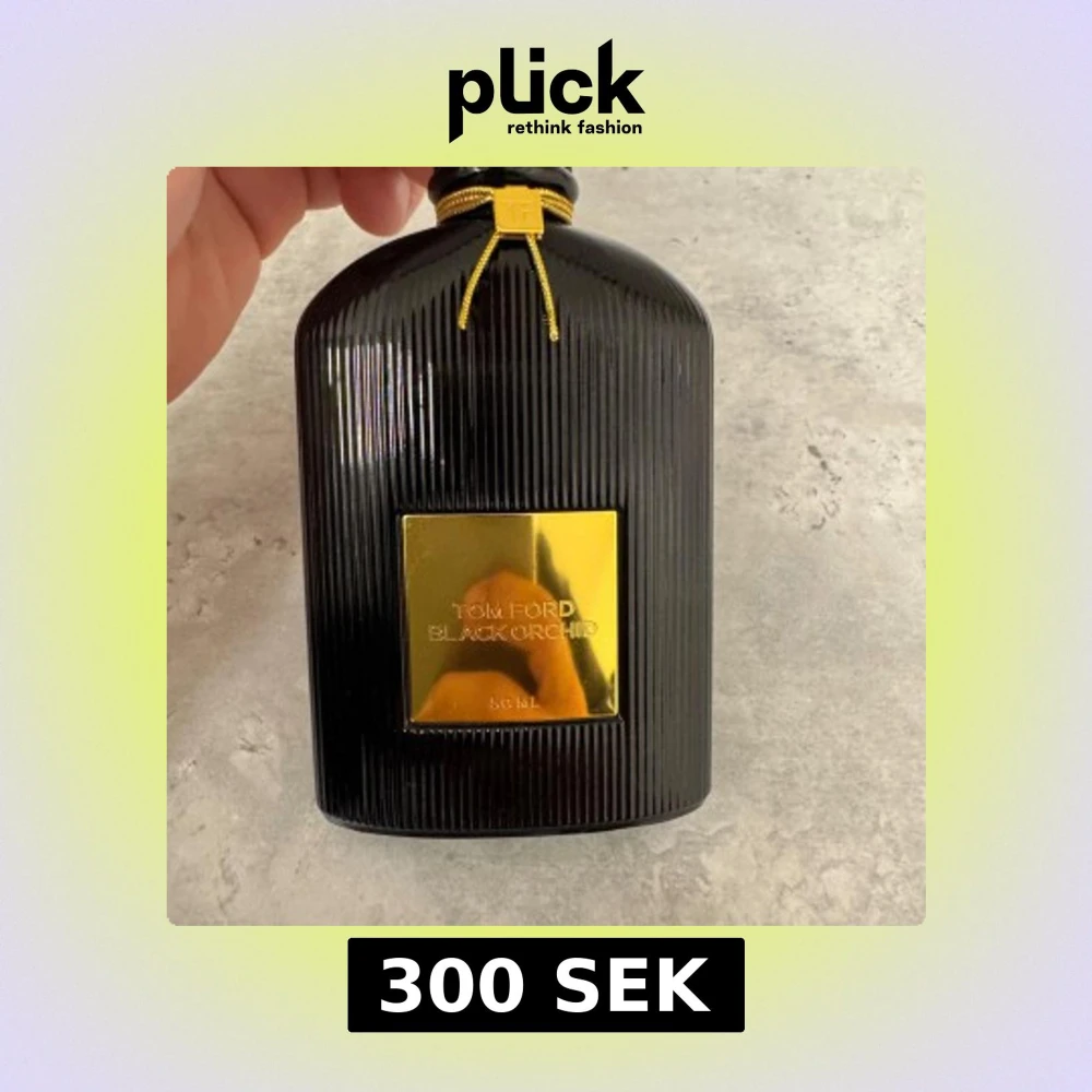 Tom Ford Black Orchid Eau de Parfum i en lyxig svart, räfflad glasflaska med gulddetaljer och guldplakett framtill. Flaskan rymmer 50 ml och har en elegant, exklusiv design med guldfärgad snodd och TF-logga vid halsen.