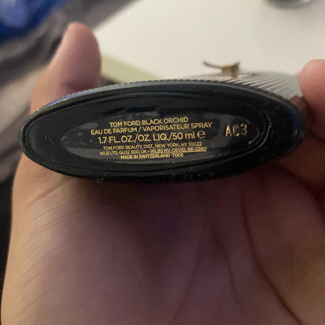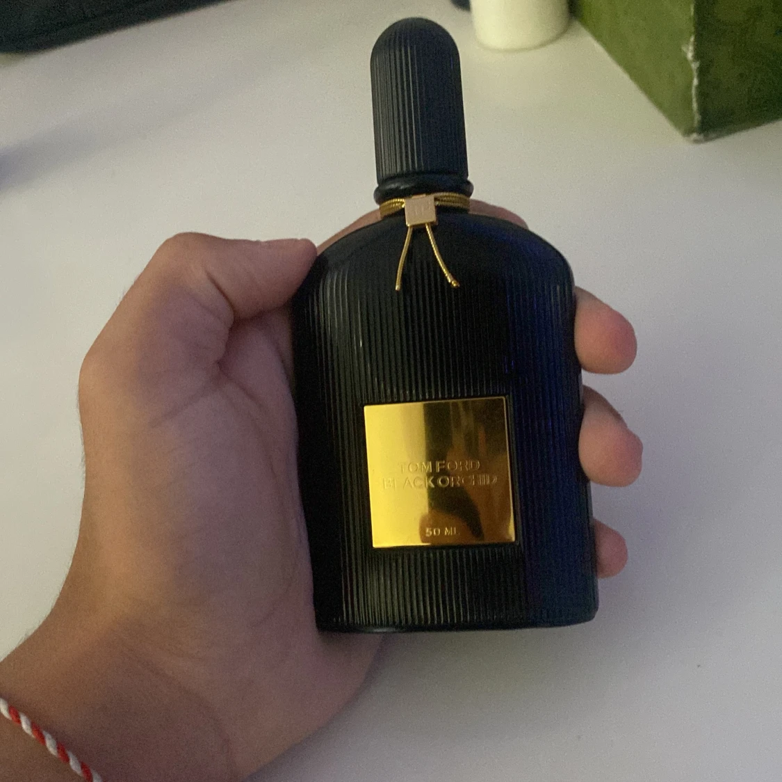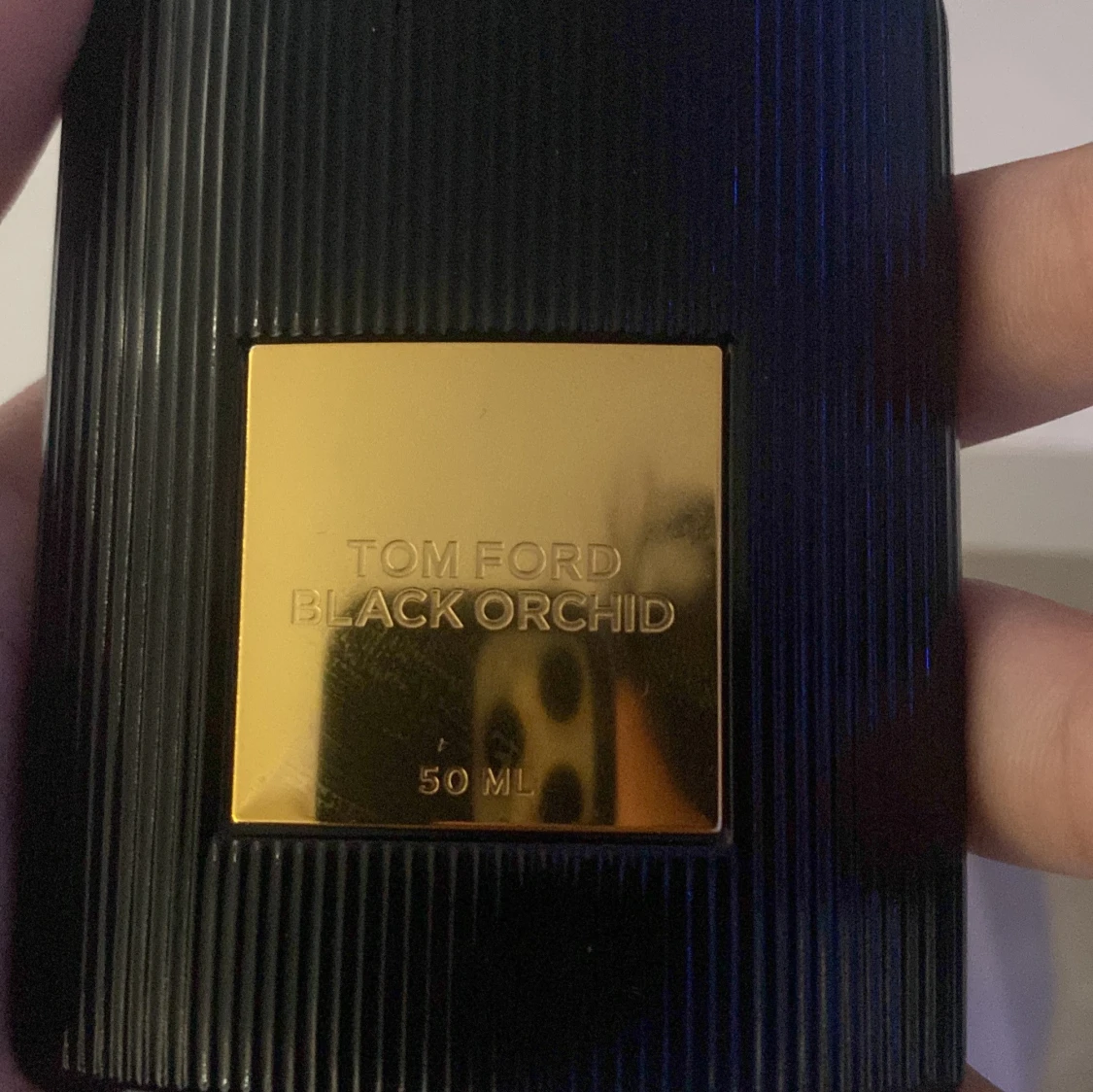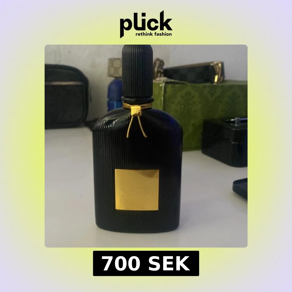 Tom Ford Black Orchid Eau de Parfum i en lyxig svart flaska med räfflad yta och gulddetaljer. Flaskan rymmer 50 ml och har en elegant, exklusiv look med guldplakett och snöre runt halsen. Perfekt för dig som gillar unika och djupa dofter.