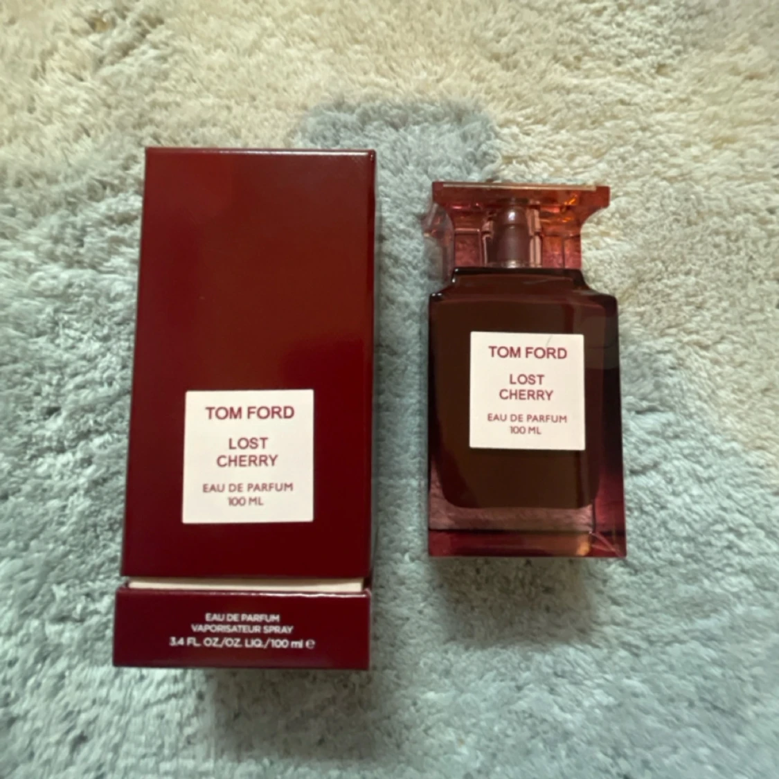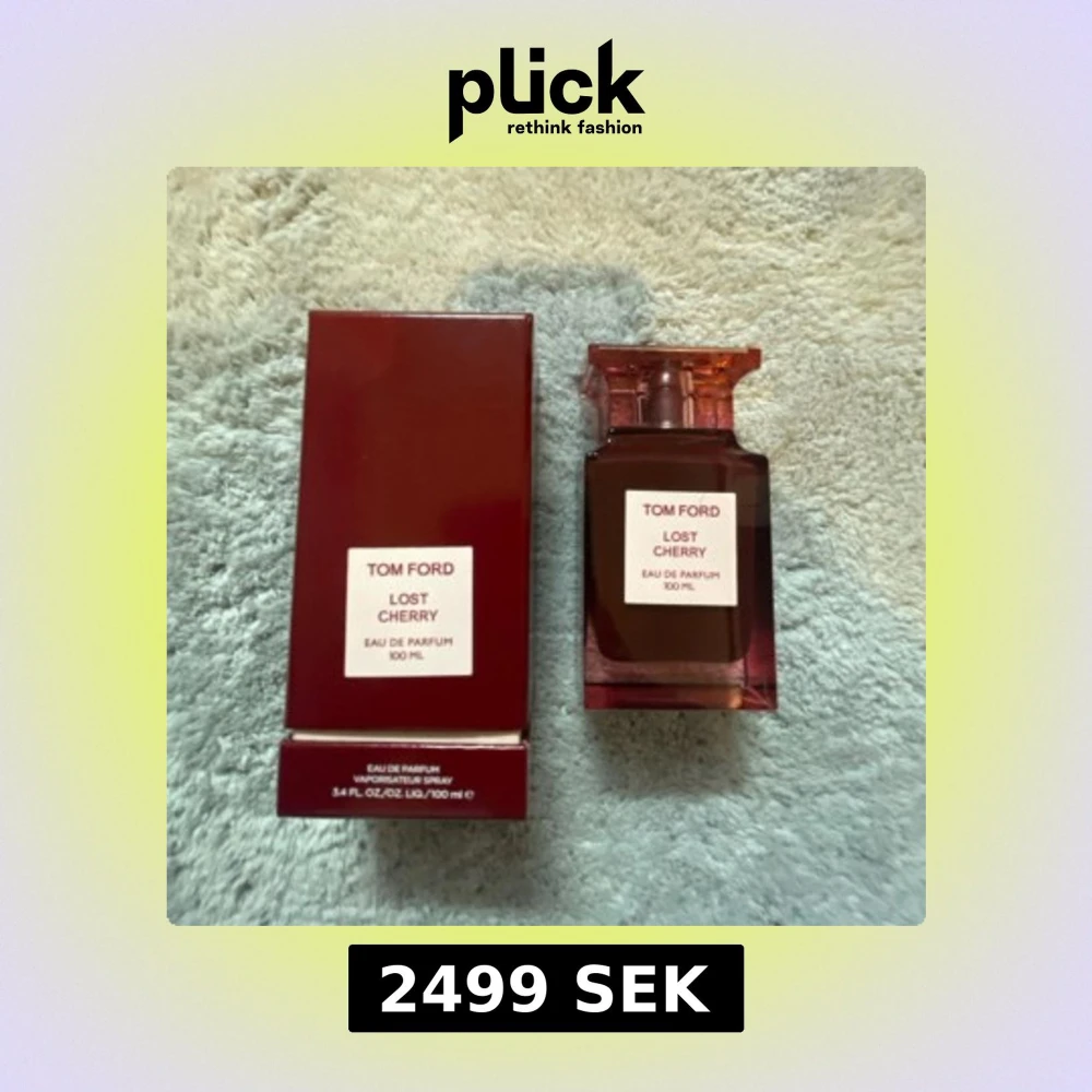 Tom Ford Lost Cherry Eau de Parfum i en lyxig mörkröd glasflaska med matchande kartong. Doften är känd för sina söta och fruktiga körsbärstoner, perfekt för dig som gillar unika och exklusiva parfymer. Flaskan rymmer 100 ml och har en elegant design.😊