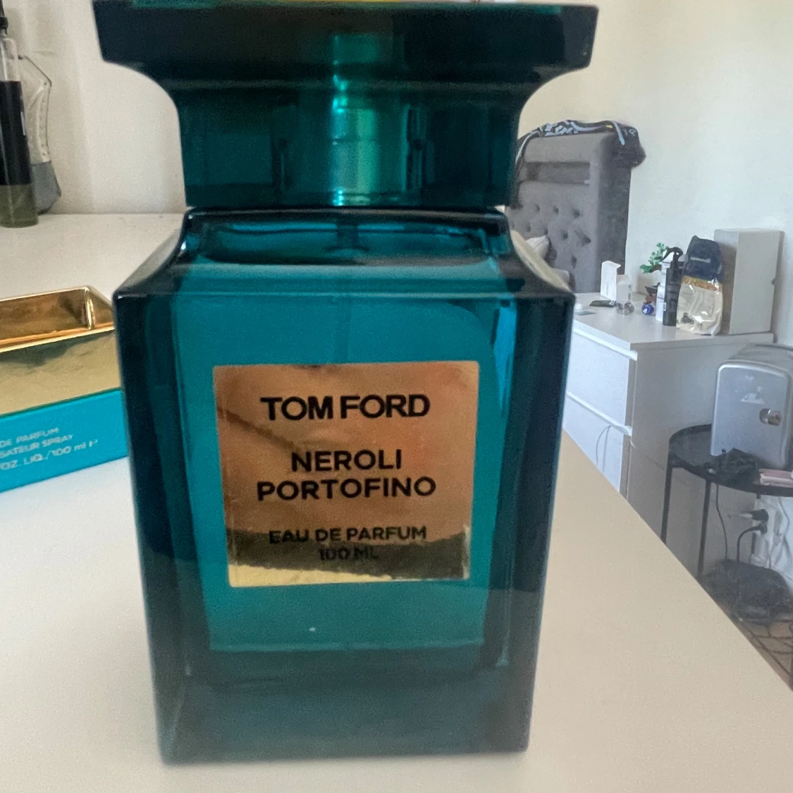 Tom Ford Neroli Portofino Eau de Parfum 100 ml i en lyxig färg (turkos) den luktar extremt gott och vilken kille som helst skulle gillat lukten inte prata om tjejerna säljer den för behöver pengar SNABBT därav det billiga priset KVITTO FINNS och priset är inte hugget i sten