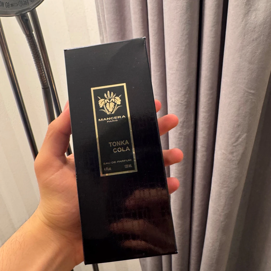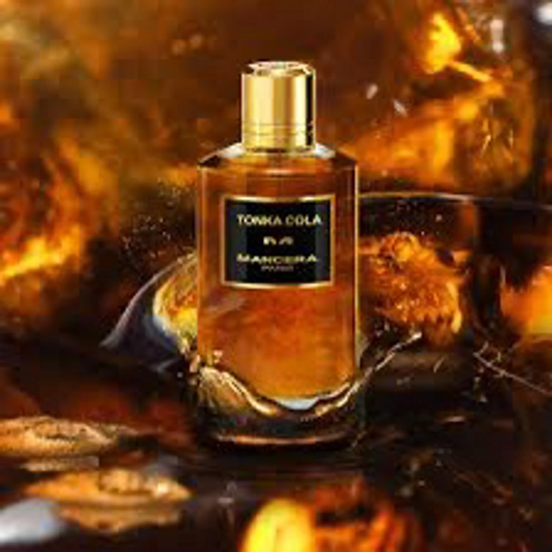 Säljer en flaska Tonka Cola Eau de Parfum från Mancera. Parfymen kommer i en elegant glasflaska med guldfärgat lock och levereras i en lyxig svart förpackning samt en guldig påse. Doften är unik och spännande, perfekt för den som vill sticka ut.