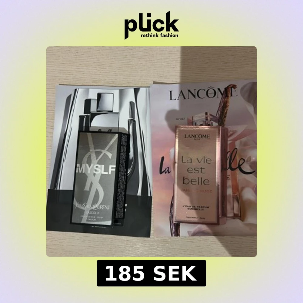 Upptäck två populära dofter: YSL MYSLF L'Absolu och Lancôme La vie est belle Vanille Nude. Båda proverna innehåller 1,2 ml och är perfekta att ta med i väskan. Ingredienser och tillverkningsland finns på förpackningen.