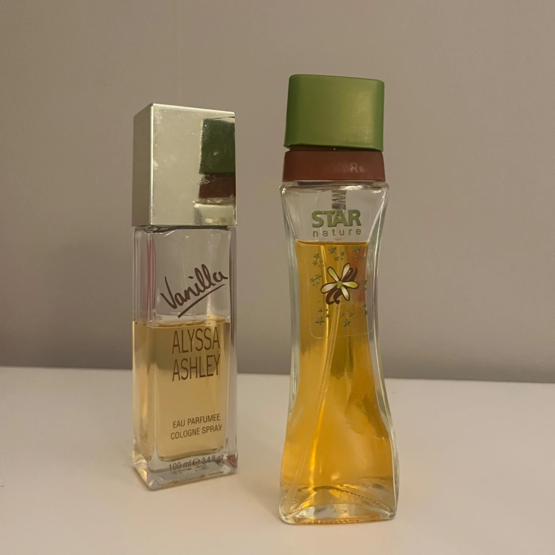 Två populära parfymer – Vanilla från Alyssa Ashley (100 ml) och Star Nature. Båda är använda som ni ser och är ganska ungdomliga