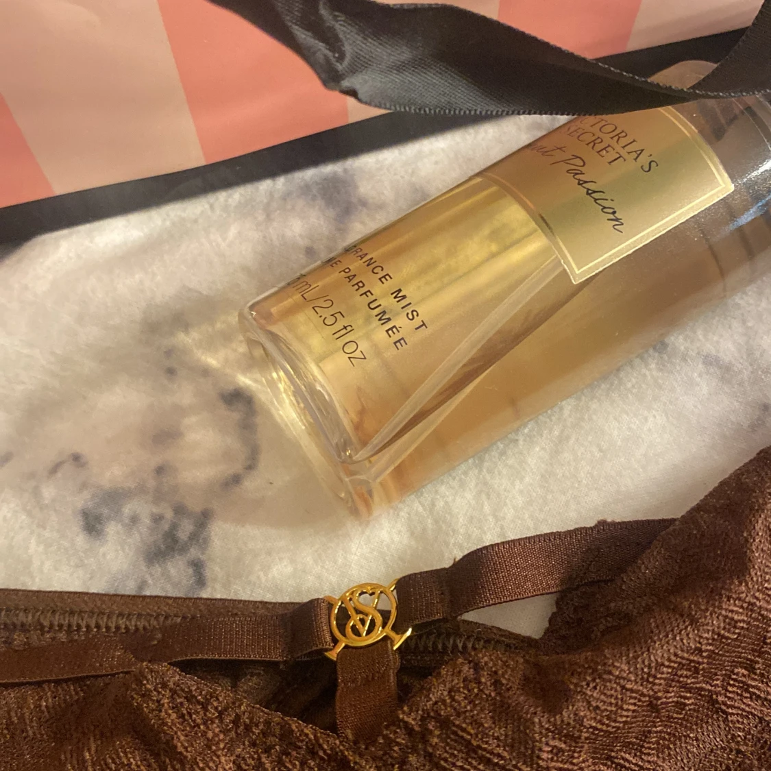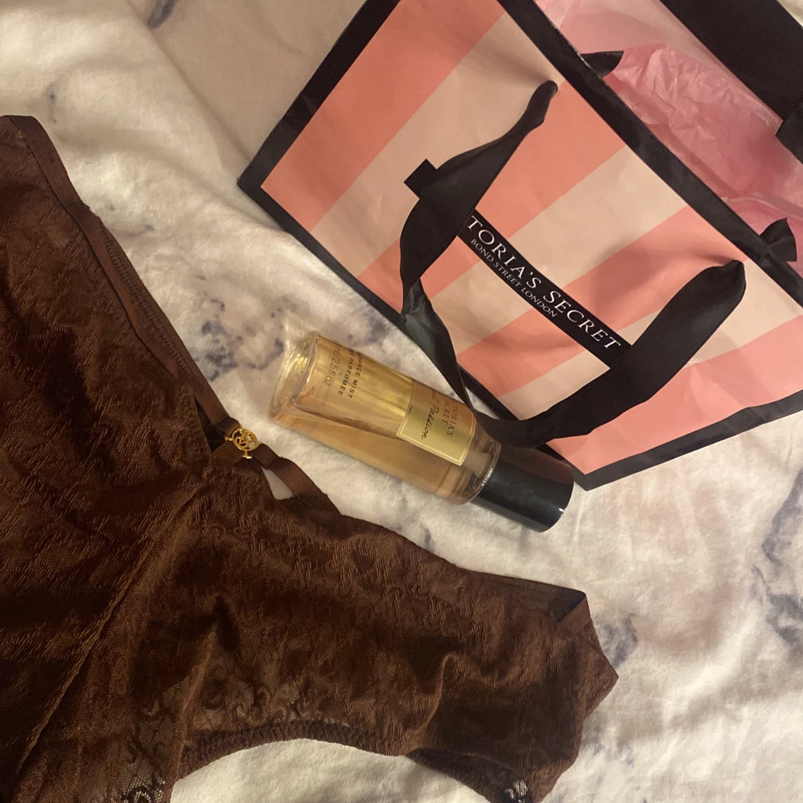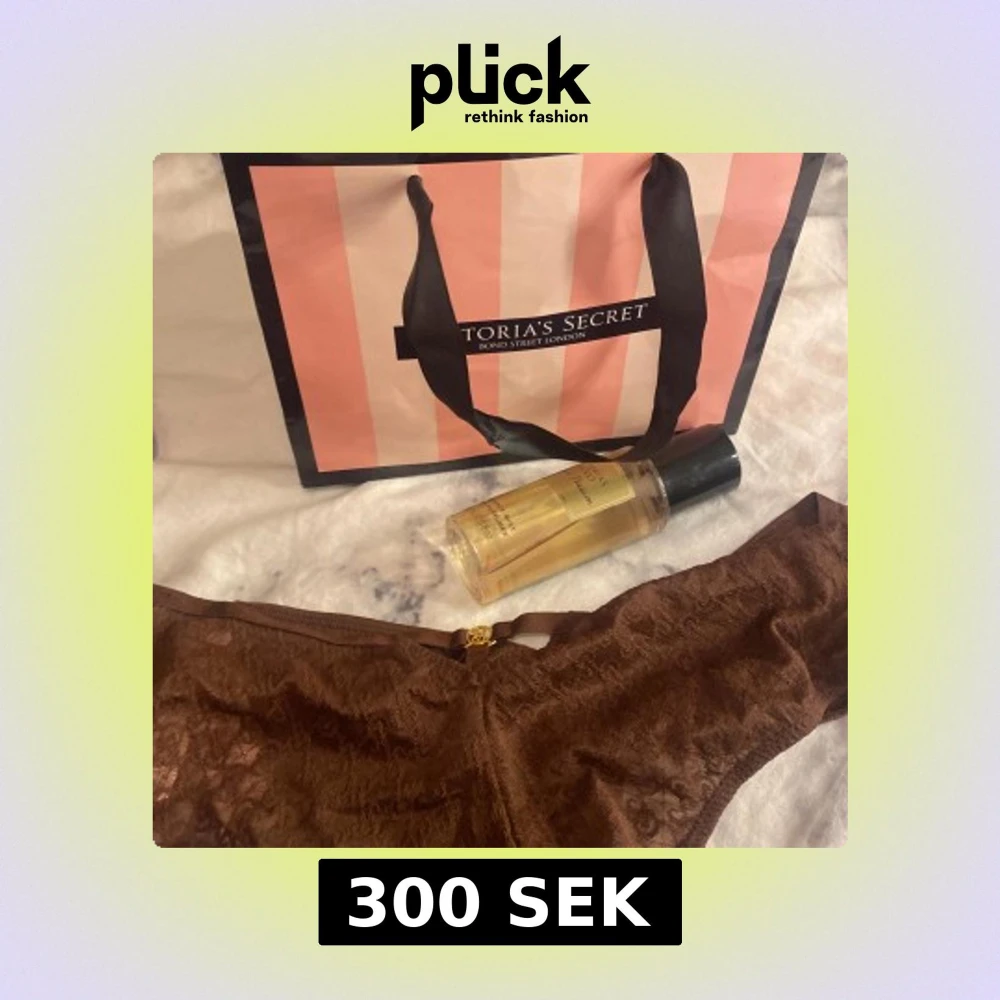 Säljer trosor från Victoria's Secret i storlek M , påse och parfymen ingår trosorna har inte använts