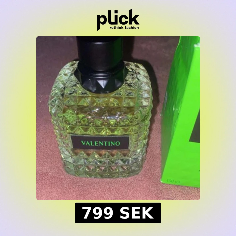 Säljer en lyxig Valentino Donna Born in Roma Green Stravaganza Eau de Parfum. Flaskan har en elegant, kristalliknande design med en grön nyans och svart kork. Förpackningen är i en livfull grön färg med märkets logga i svart. Perfekt för den som vill ha en unik och iögonfallande doft.